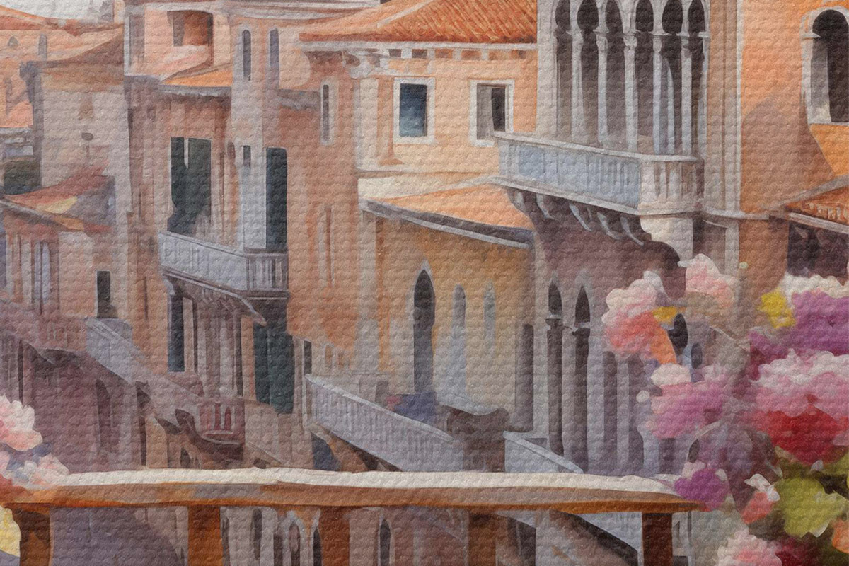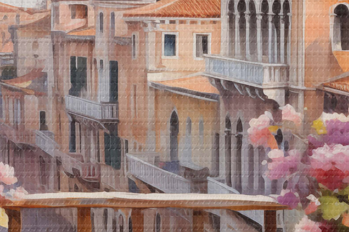 Okrągłe obrazy Kwiaty w wazonach z widokiem na zatokę w weneckiej akwareli r40677