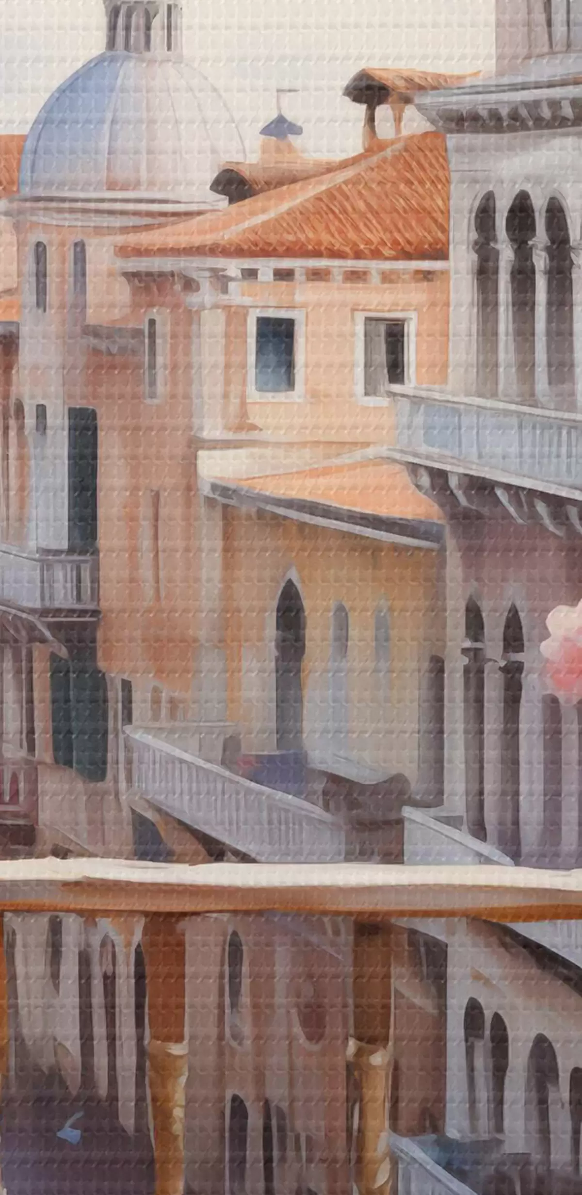 Okrągły obraz Kwiaty w wazonach z widokiem na zatokę w weneckiej akwareli Nr r40677