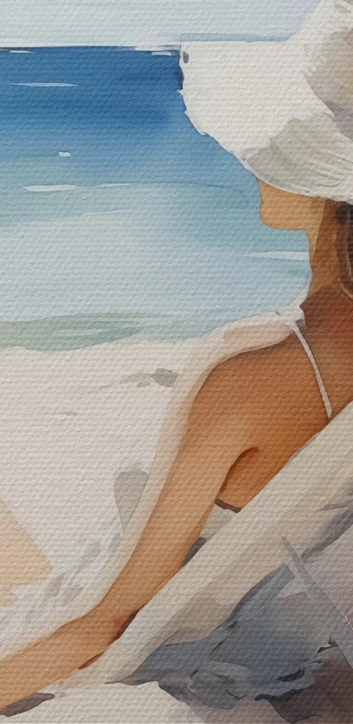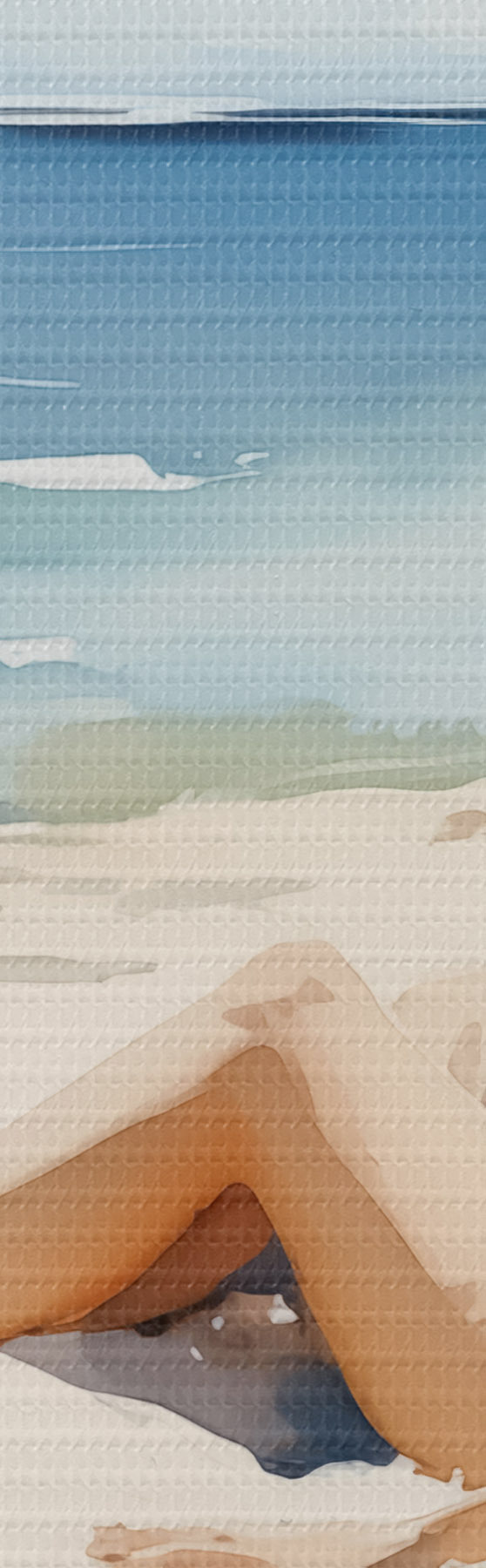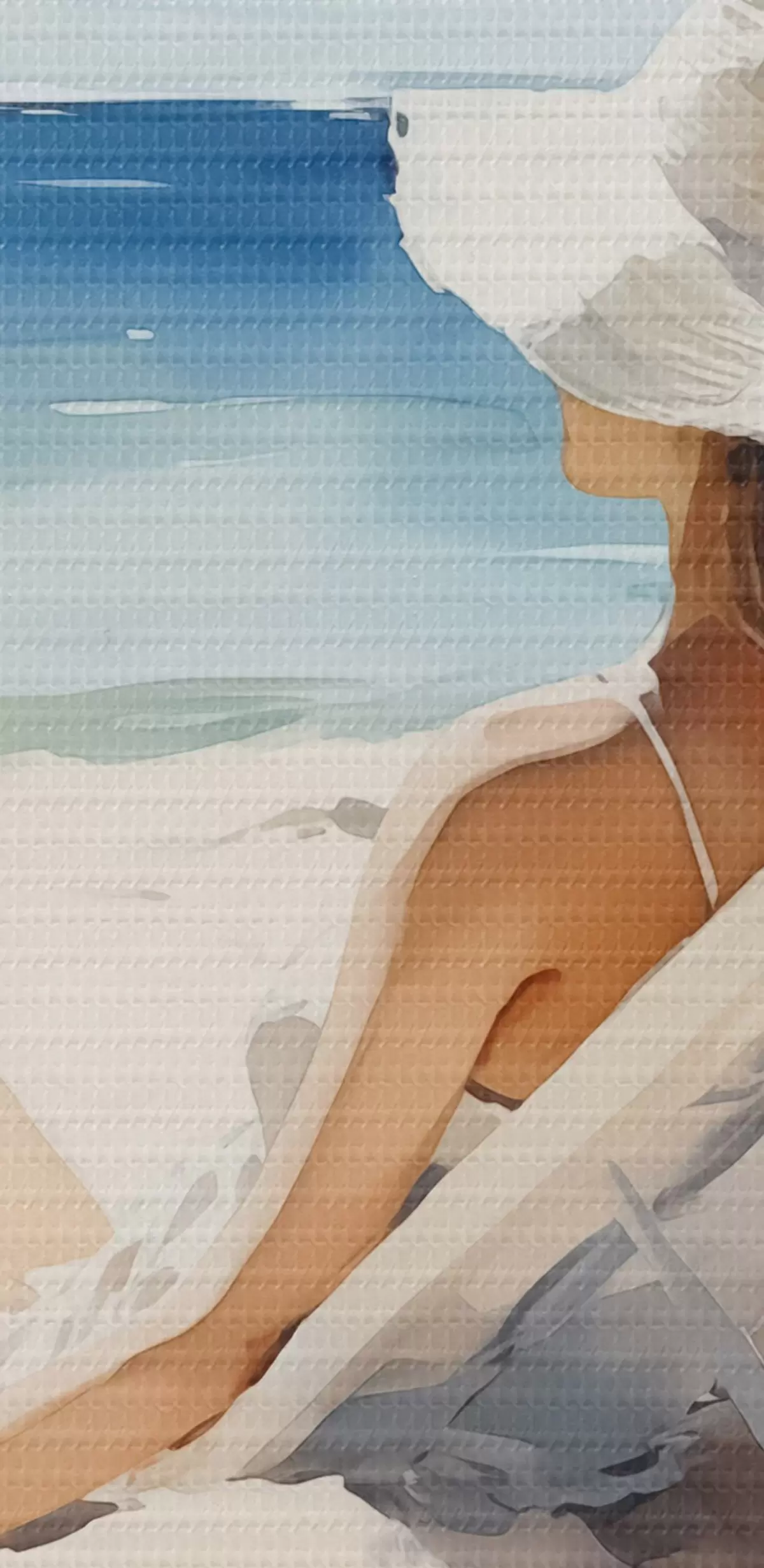 Okrągły obraz Dziewczyna relaksująca się na plaży nad morzem akwarela Nr r40679