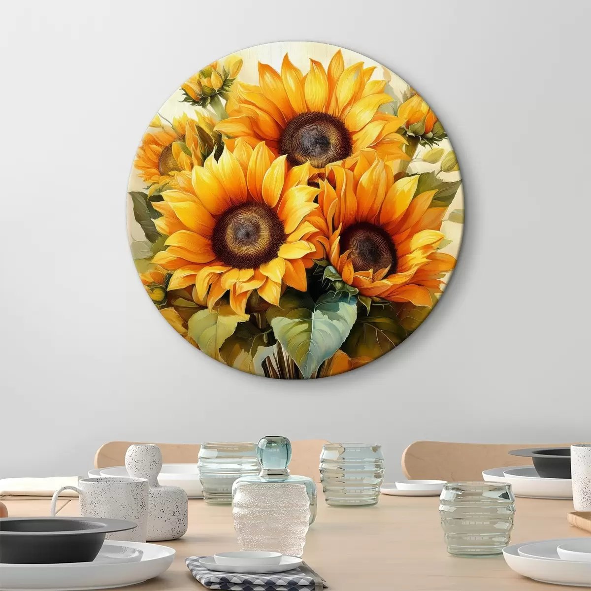 Okrągły obraz duże słoneczniki, żółte słoneczniki Nr r40710