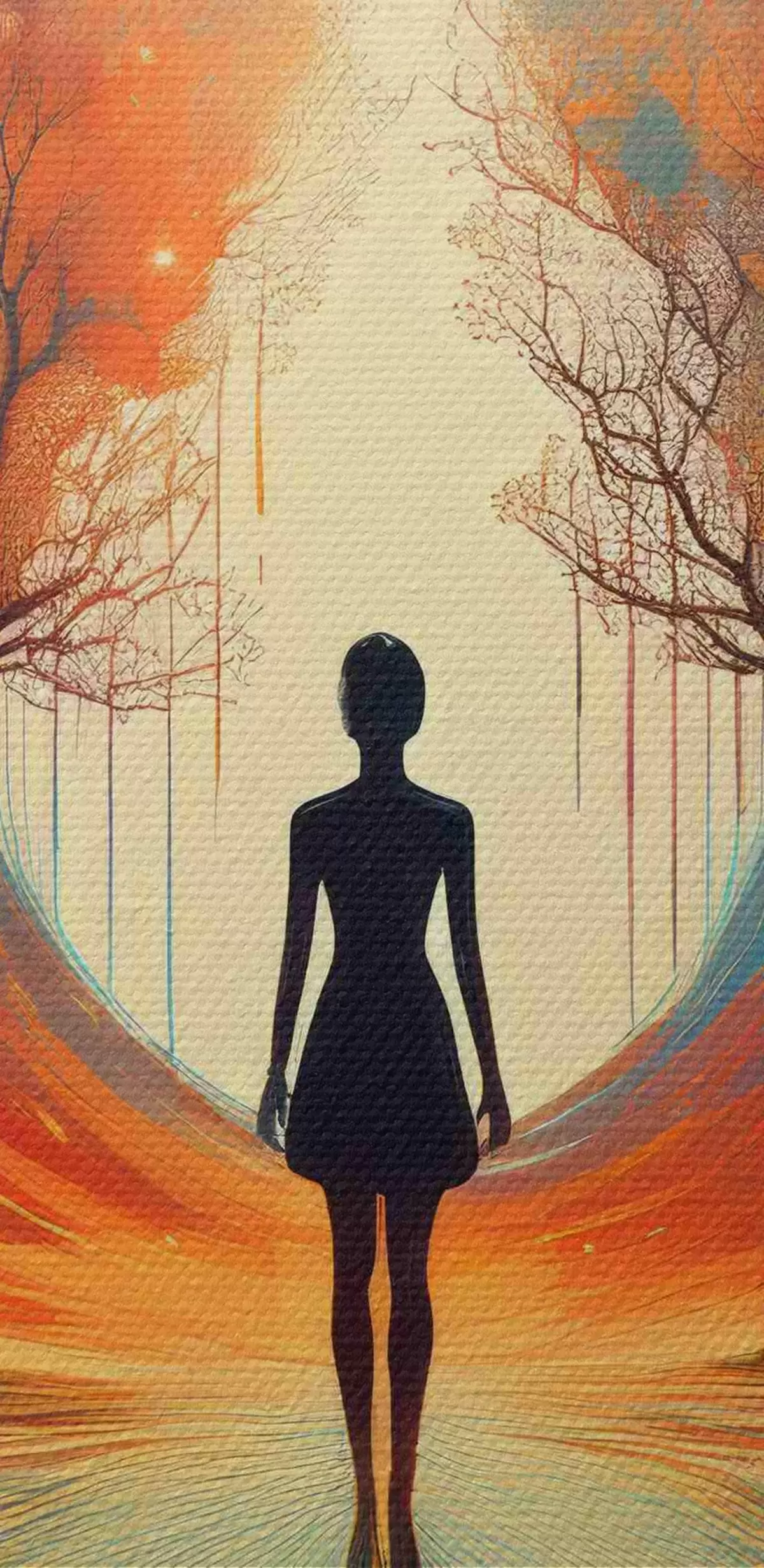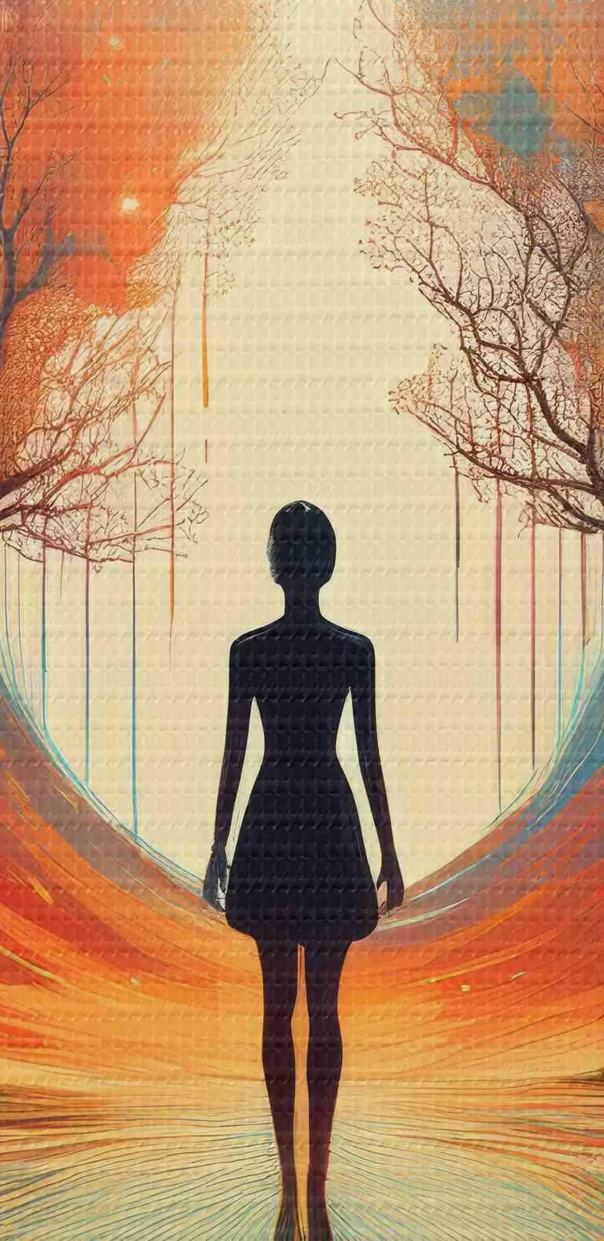 Okrągłe obrazy sylwetka między drzewami, samoświadomość, autorefleksja r40713
