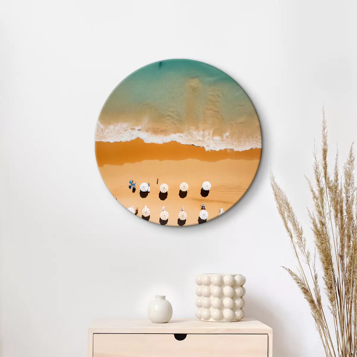 Okrągłe obrazy Minimalistyczny krajobraz z widokiem na morze i plażę r40725