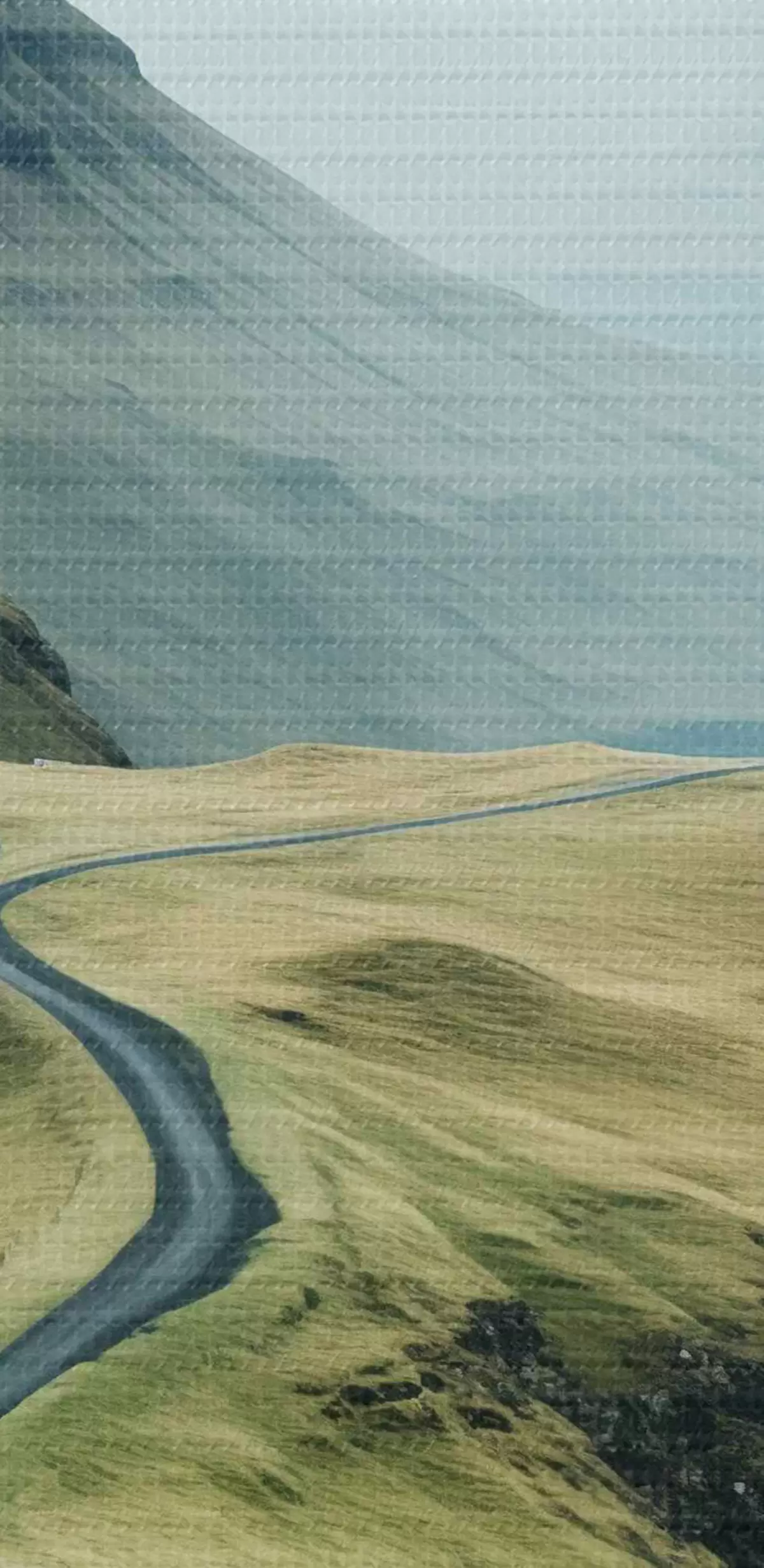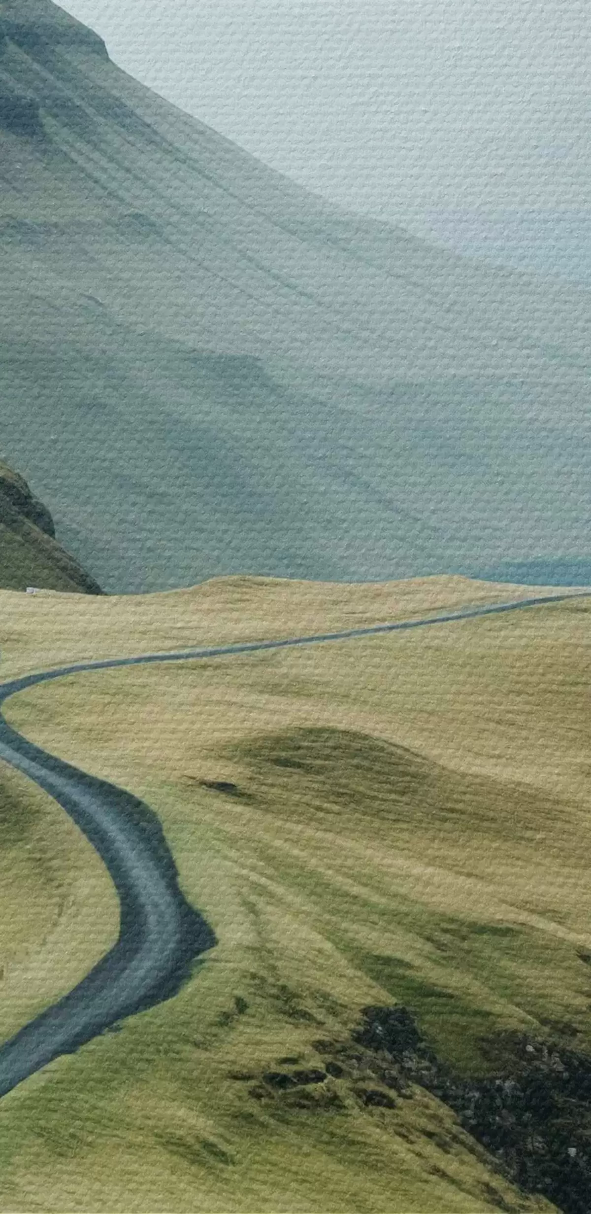 Okrągłe obrazy Minimalistyczny krajobraz drogowy na Wyspach Owczych nad morzem r40726