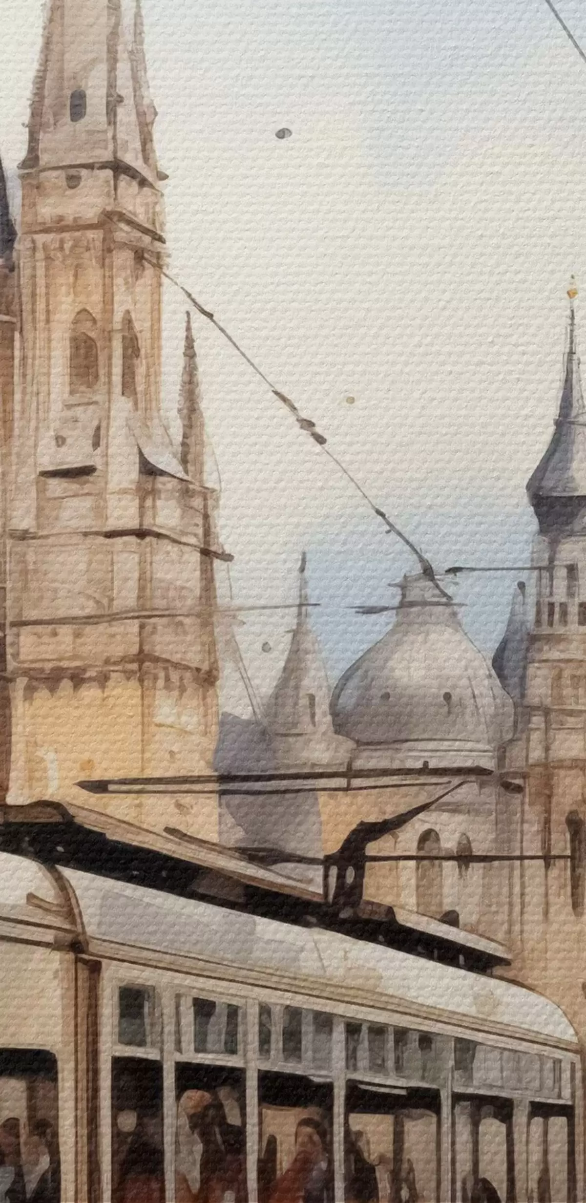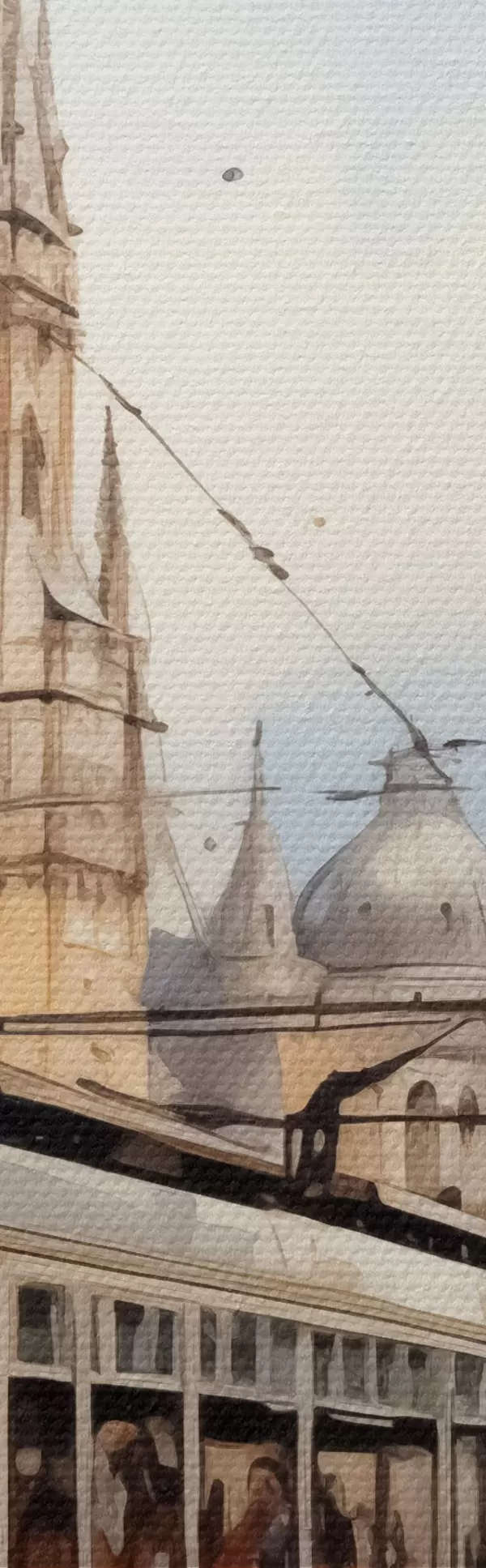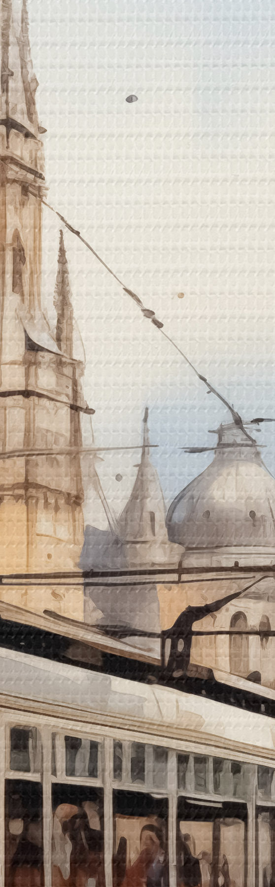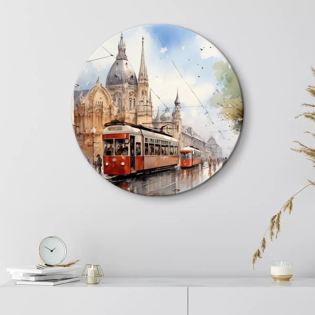 Okrągły obraz Czerwony tramwaj na wiedeńskiej ulicy - akwarela Nr r40732