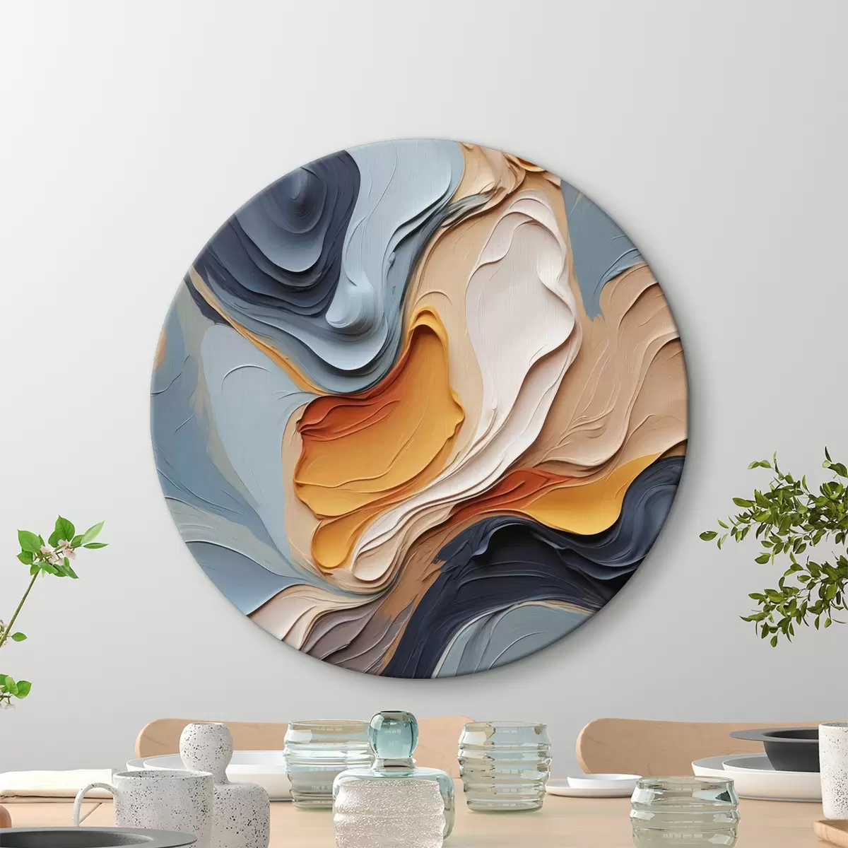 Okrągłe obrazy Abstrakcja w odcieniach niebieskiego i pomarańczowego z imitacją tekstury r40743