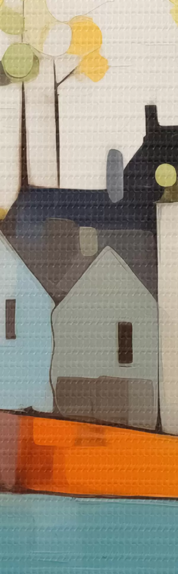 Okrągłe obrazy Abstrakcyjne miasto i domy, kolory niebieski, żółty, czerwony r40751
