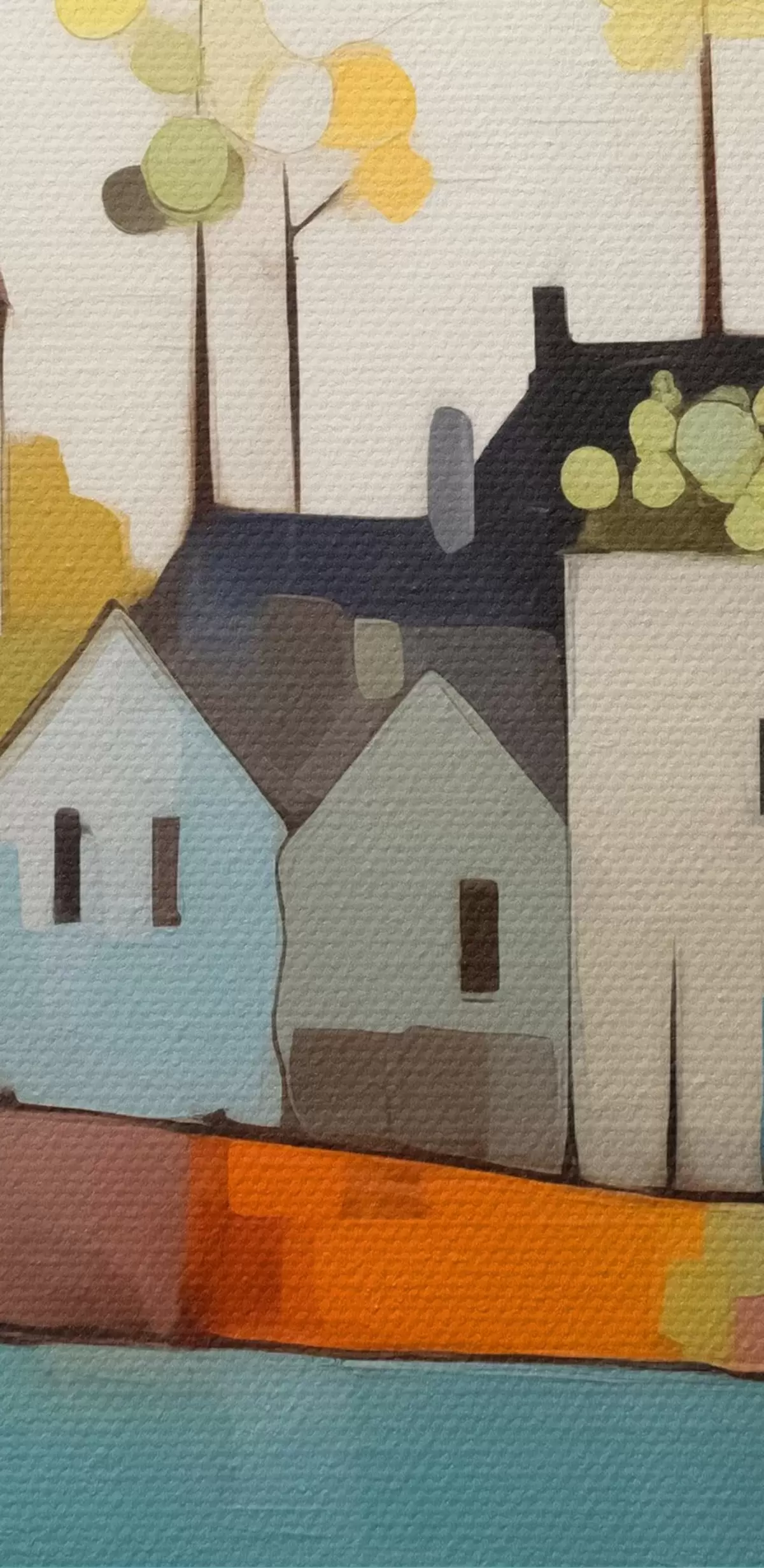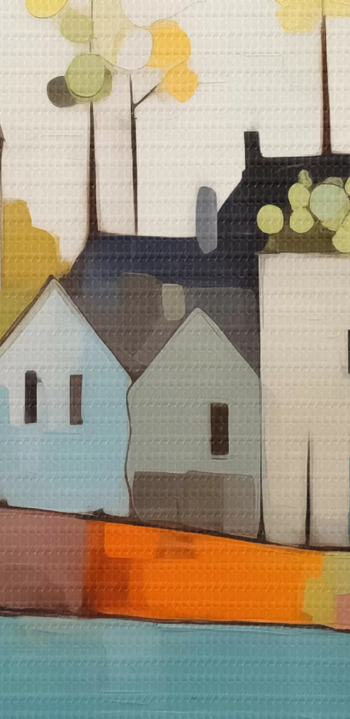 Okrągłe obrazy Abstrakcyjne miasto i domy, kolory niebieski, żółty, czerwony r40751