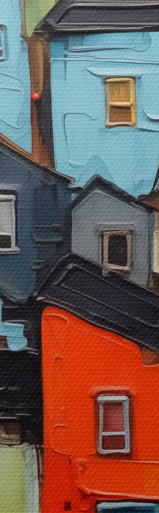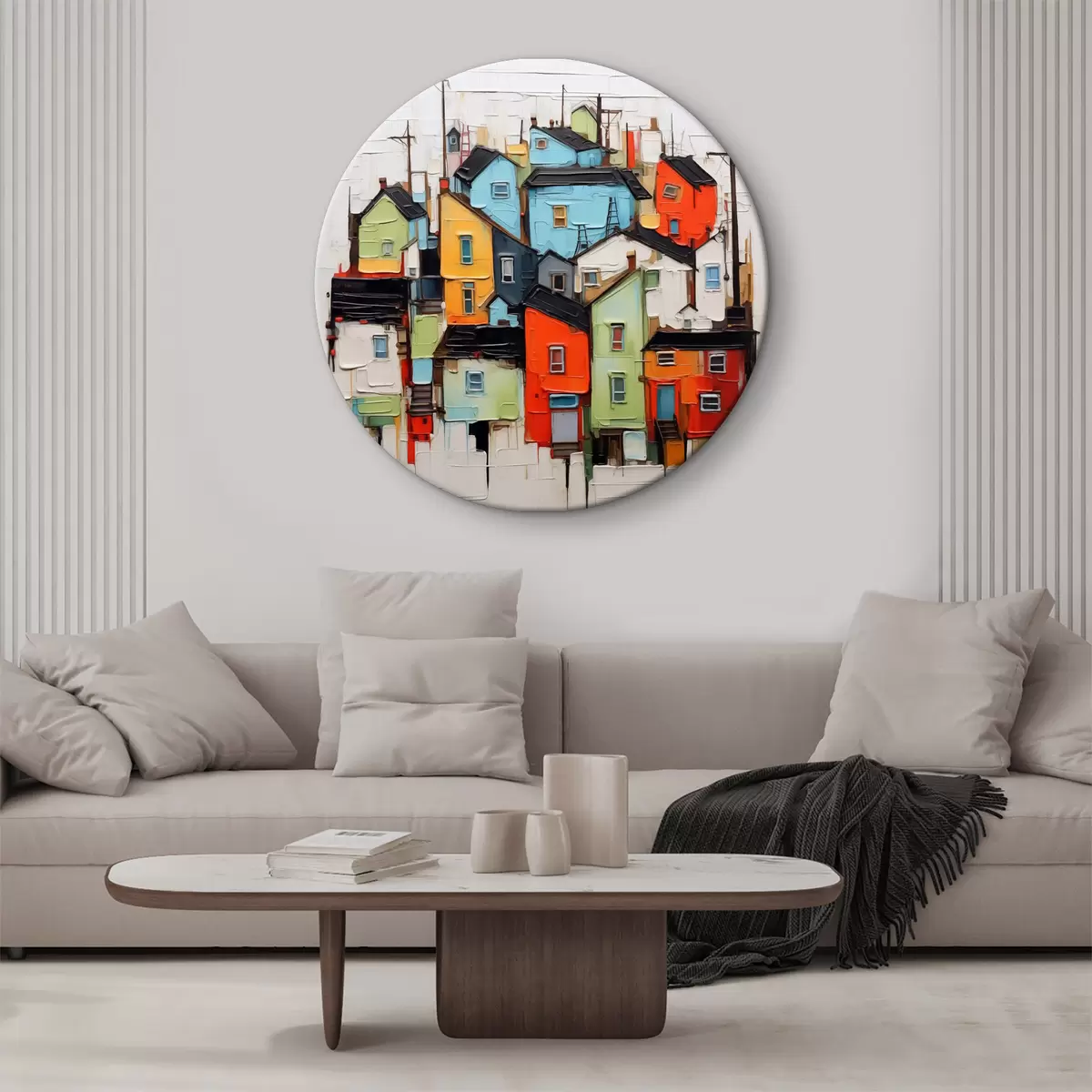 Okrągły obraz Abstrakcyjne domy imitujące pociągnięcia pędzla Nr r40760