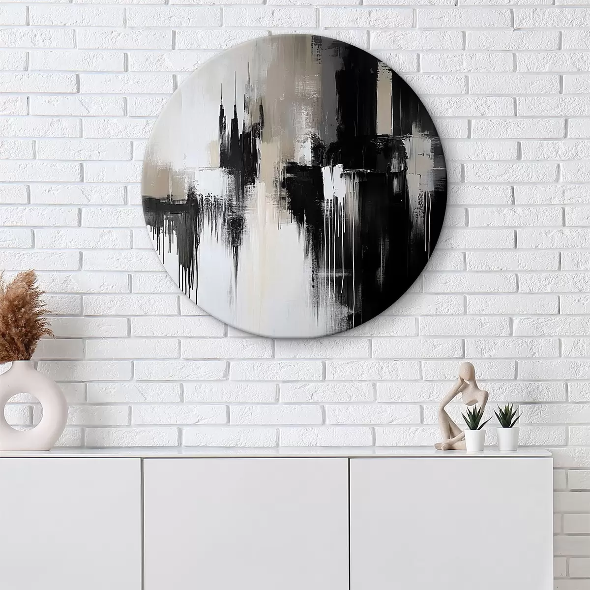 Okrągły obraz Abstrakcja w odcieniach czerni i beżu Nr r40794