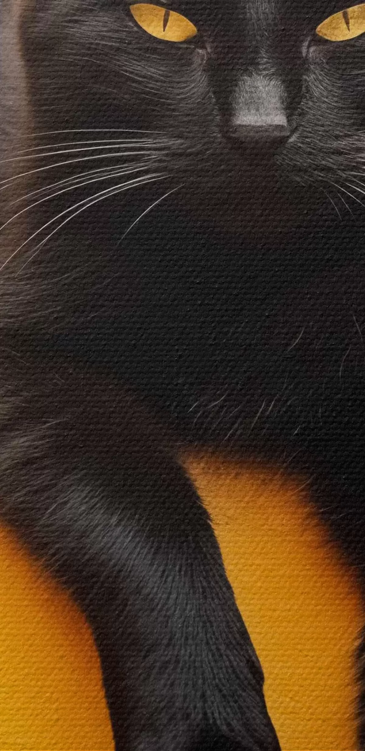 Okrągły obraz Czarny kot leży na żółtych schodach Nr r40798