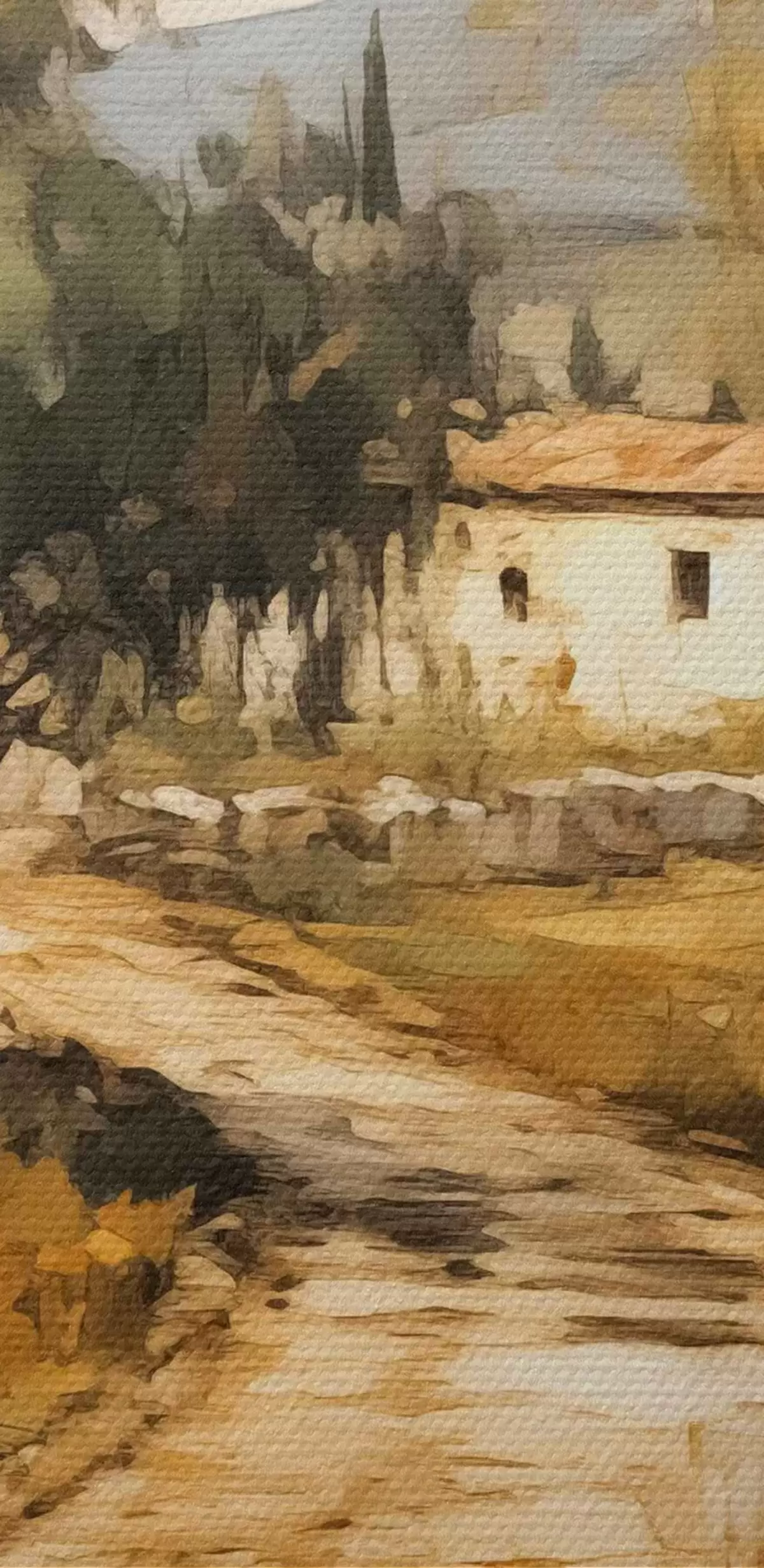 Okrągły obraz Droga do wioski, drzewa oliwne Nr r40810
