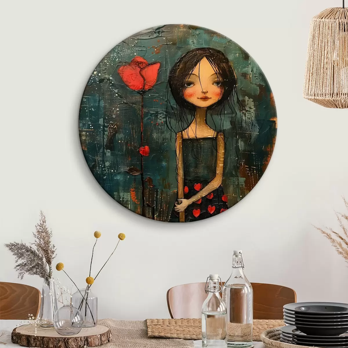 Okrągły obraz Dziewczyna z kwiatkiem Nr r40897