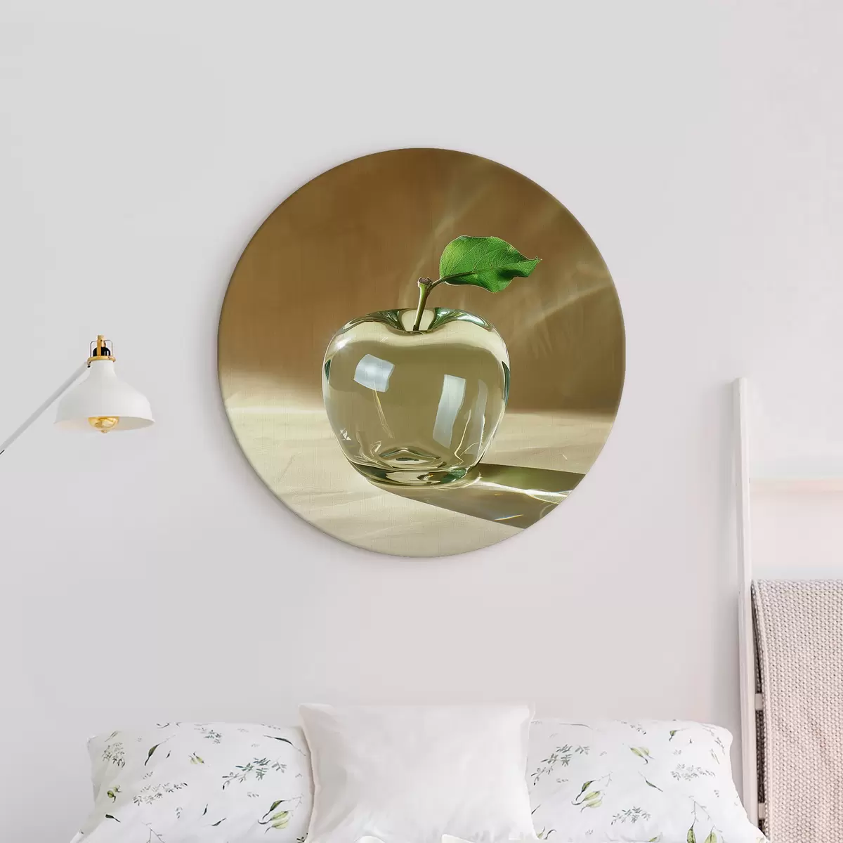 Okrągły obraz Przezroczyste szklane jabłko na jasnym tle Nr r40913