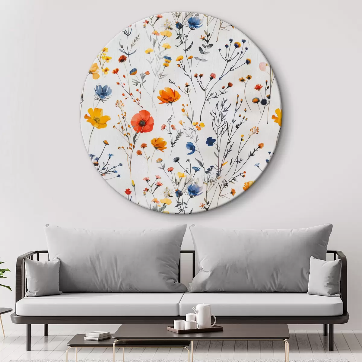 Okrągłe obrazy Kompozycja kwiatowa z makami i innymi dzikimi kwiatami r40959