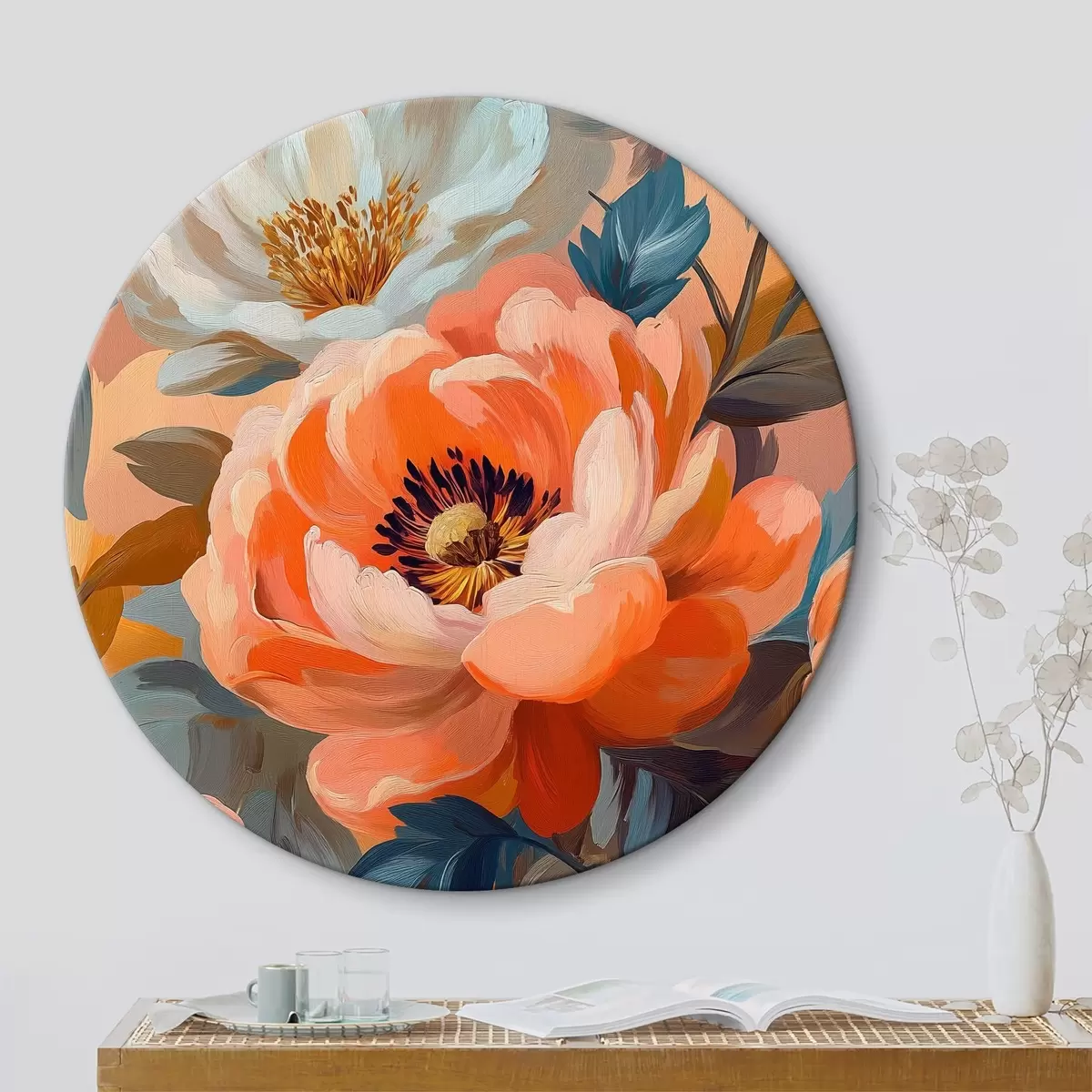 Okrągły obraz Przyciągające wzrok piwonie w ciepłych odcieniach Nr r40963