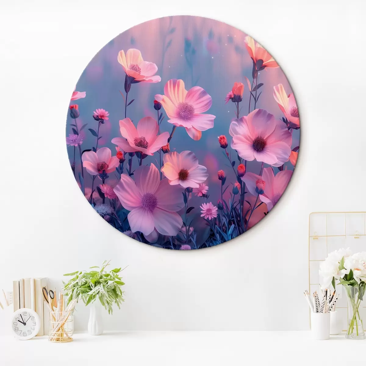 Okrągły obraz Bajkowe kwiaty w odcieniach różu i błękitu Nr r40990