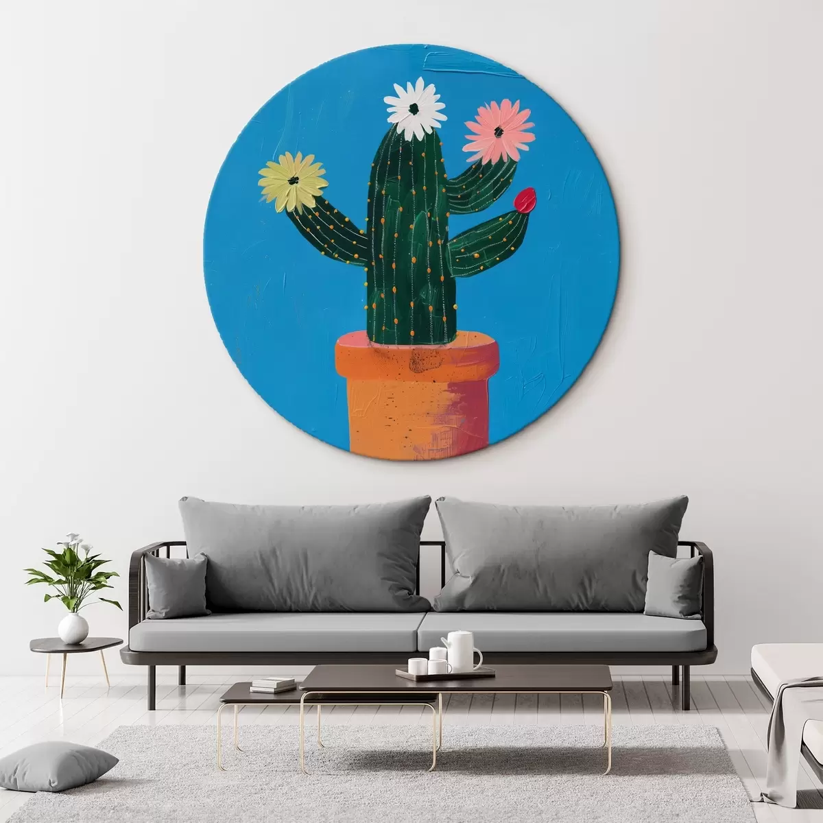 Okrągły obraz Jasny kaktus w doniczce Nr r40997