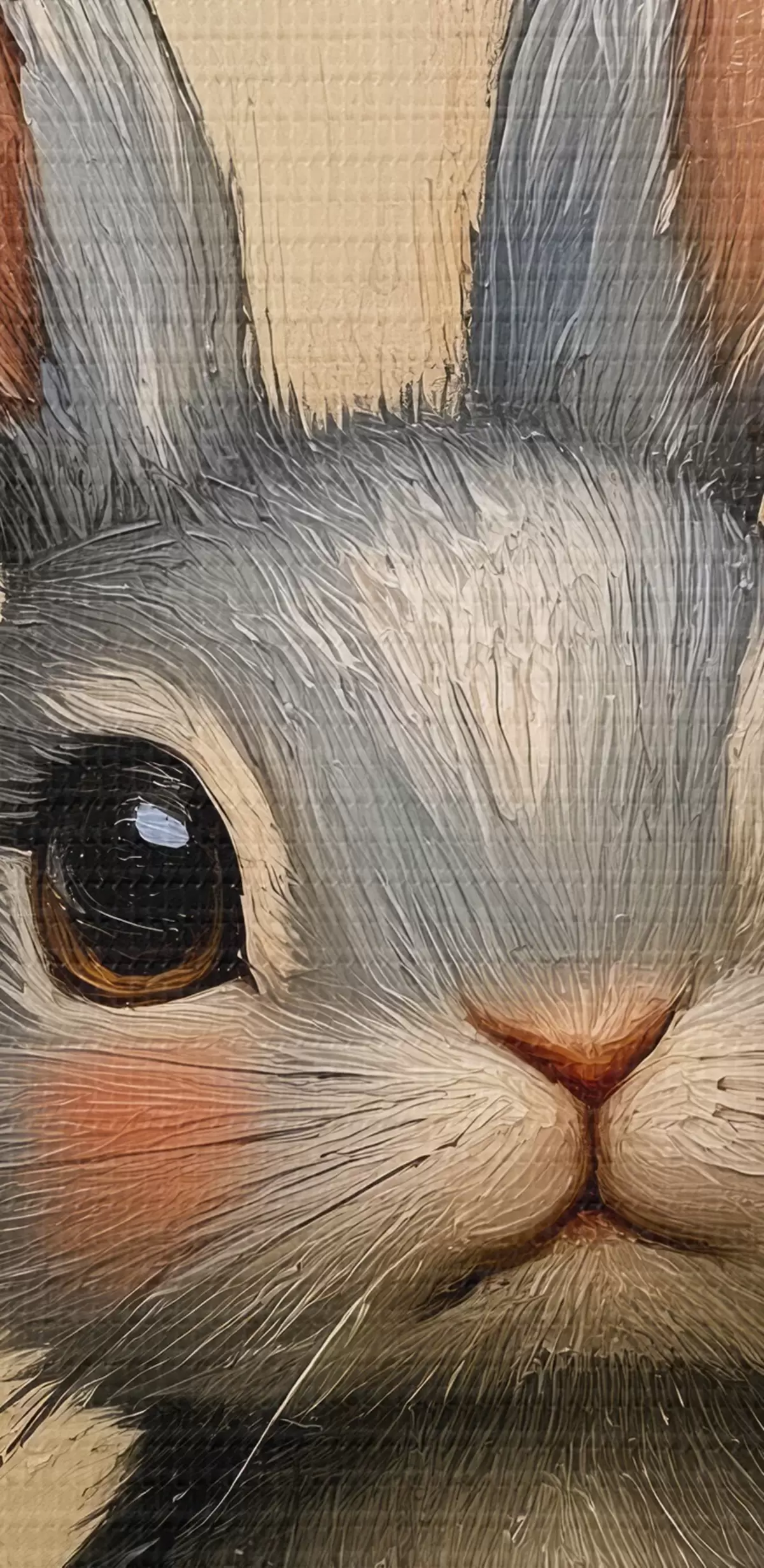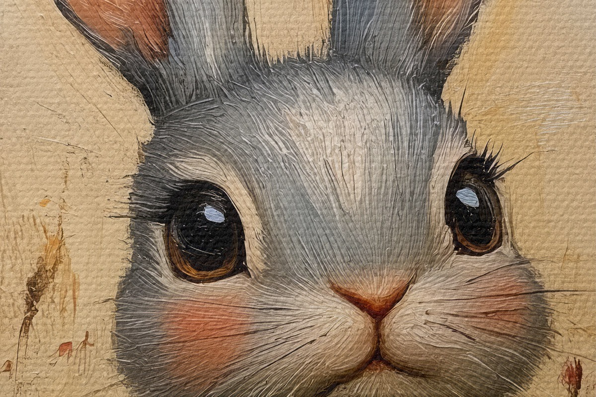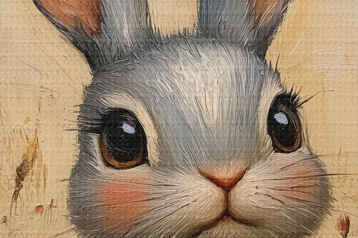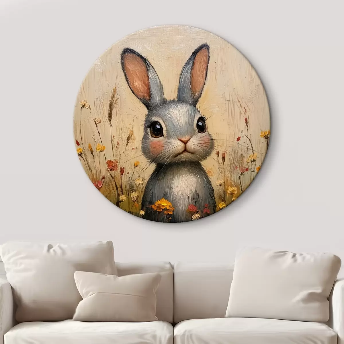 Okrągły obraz Królik na polu wśród kwiatów z pociągnięciami pędzla Nr r40999