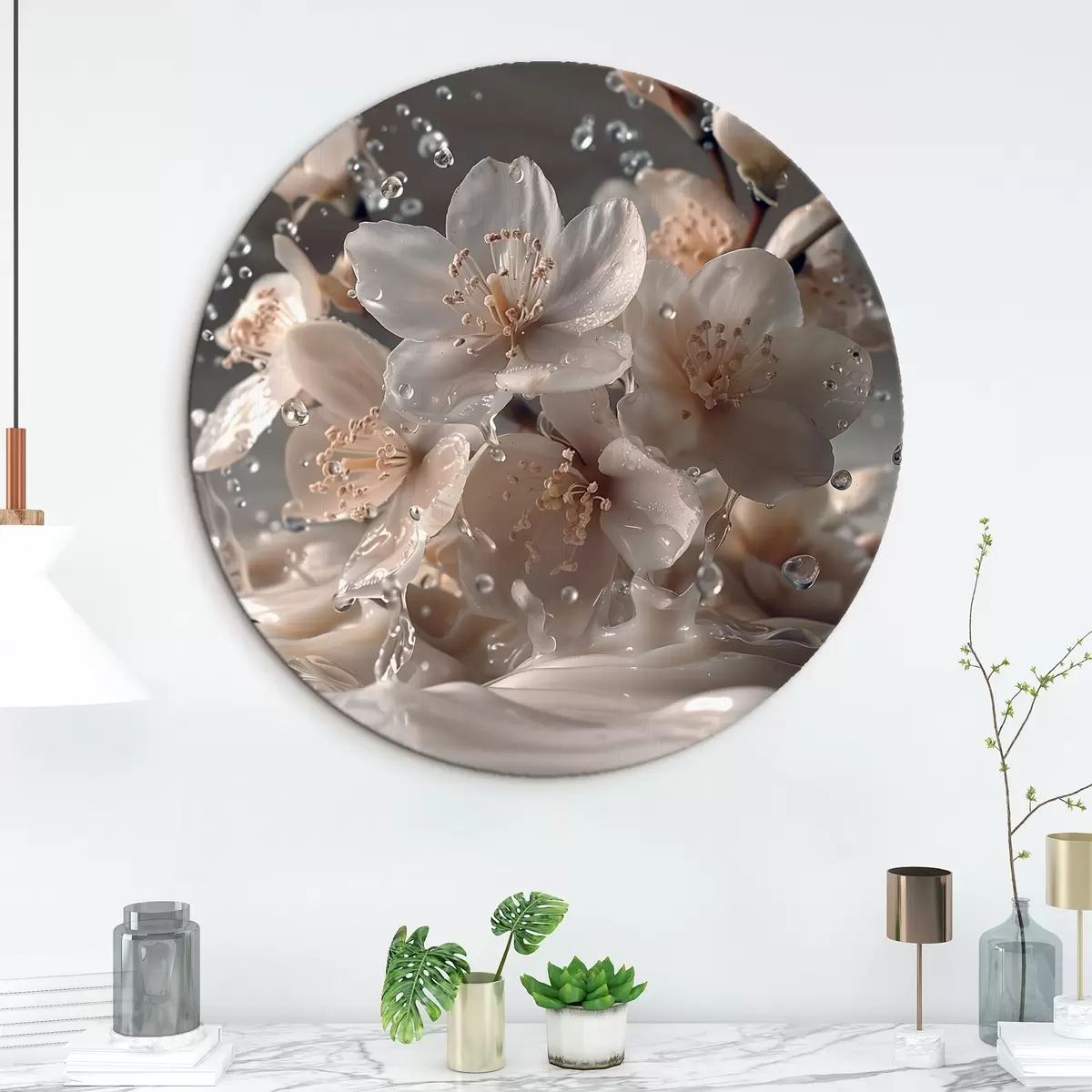 Okrągły obraz Kwiaty jaśminu w wirze kropel Nr r41003