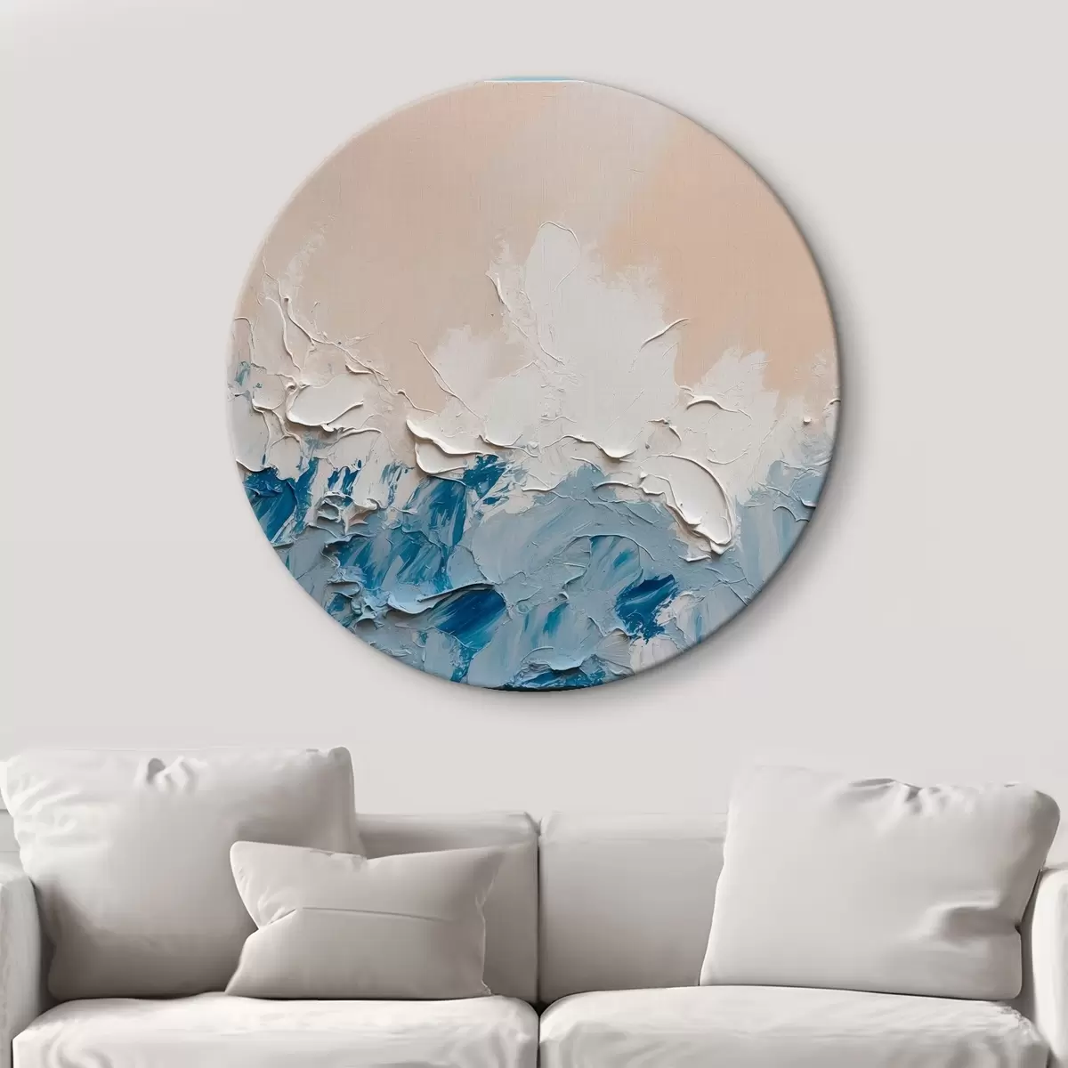 Okrągłe obrazy Abstrakcja z białymi, niebieskimi i niebieskimi kolorami oleju r41027