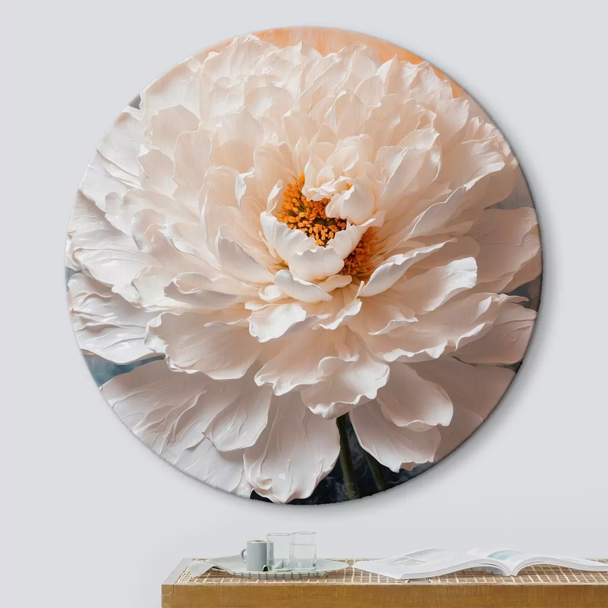 Okrągły obraz Biały kwiat na pomarańczowo-niebieskim tle Nr r41038
