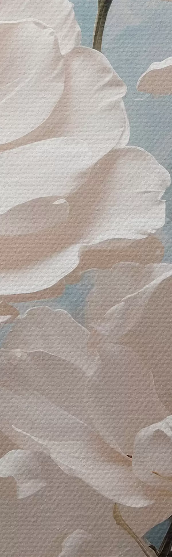 Drobny splot nici na tym płótnie przypomina powierzchnię profesjonalnych płócien artystycznych.