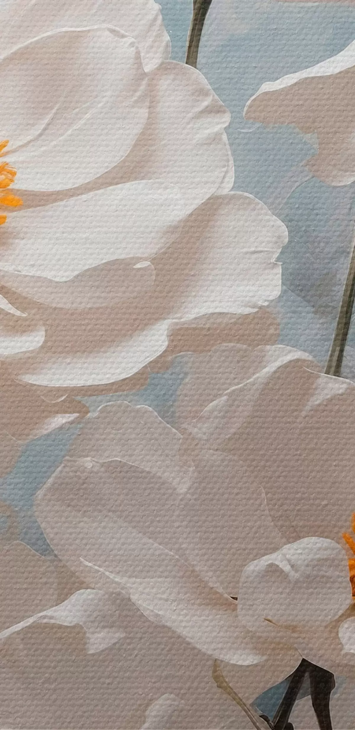 Do zamówienia dostępne są trzy rodzaje materiału: Economic Canvas - gęsty i trwały materiał do druku cyfrowego, identyczny z płótnem malarskim, wodoodporna powierzchnia, realistyczne odwzorowanie szczegółów, materiał średnioziarnisty. Premium Canvas - tekstura przypominająca płótno malarskie (przeplatane drobne nitki). Miękka, szczegółowa reprodukcja obrazu na matowej powierzchni. Eco-Premium - wysokiej jakości tkanina w 100% bawełniana. Dzięki naturalnym włóknom bawełnianym materiał jest trwały i odporny na zużycie. Doskonałe odwzorowanie kolorów i szczegółów.