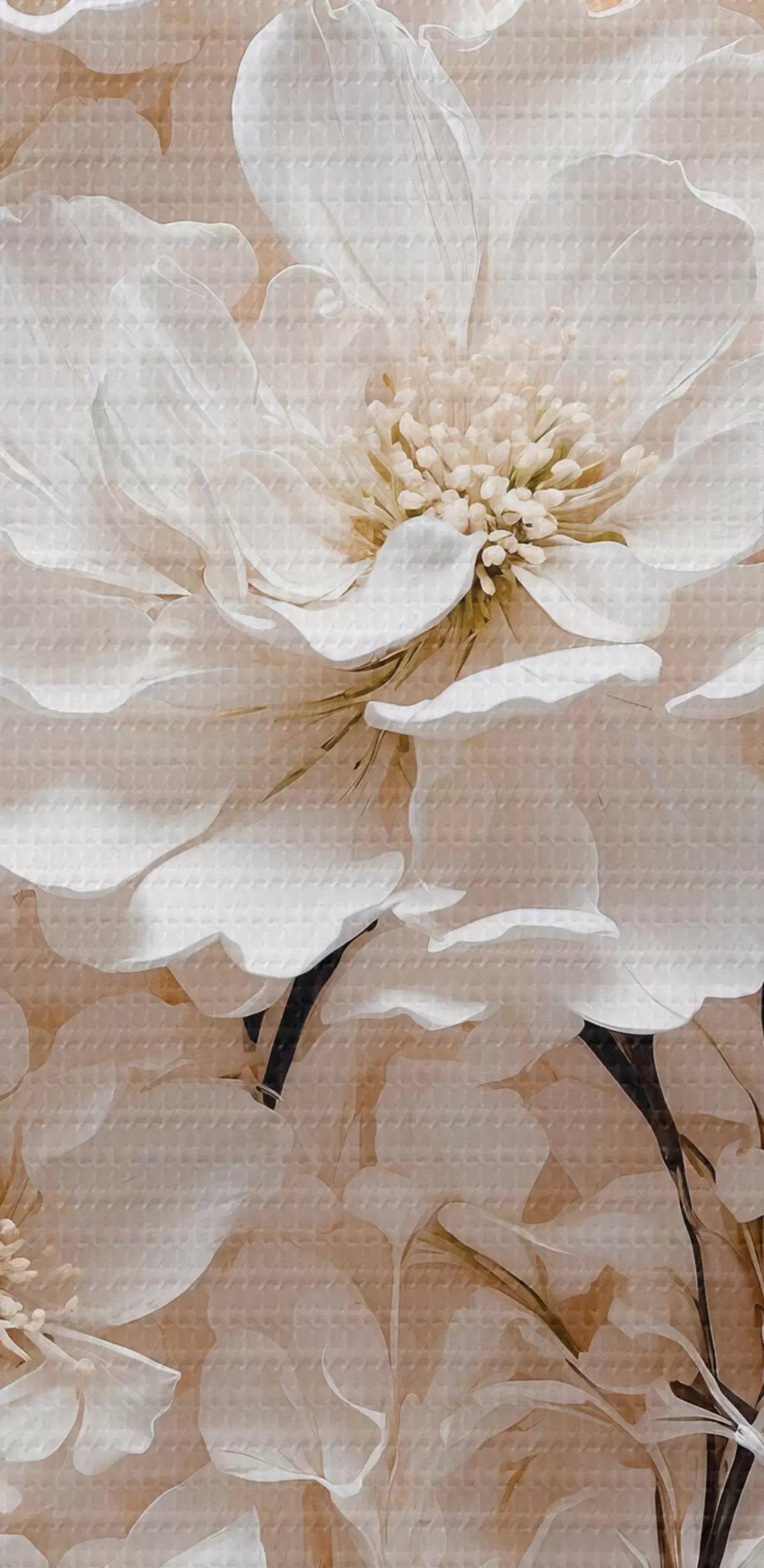 Okrągły obraz Białe kwiaty na biało-pomarańczowym tle Nr r41042