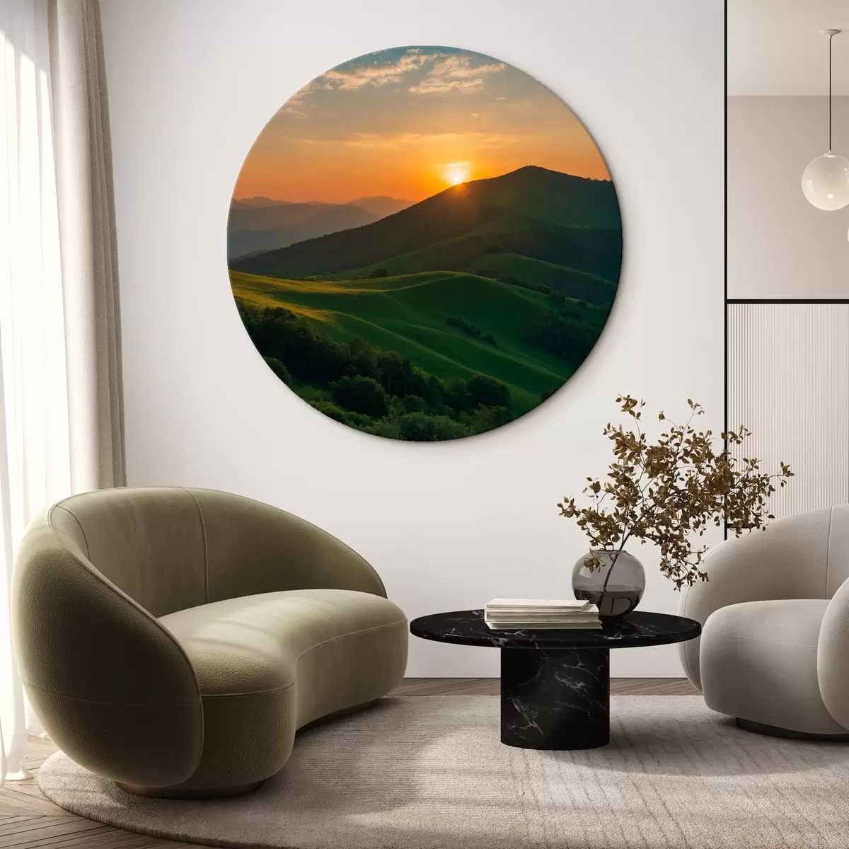 Okrągły obraz Widok z góry o zachodzie słońca Nr r41045