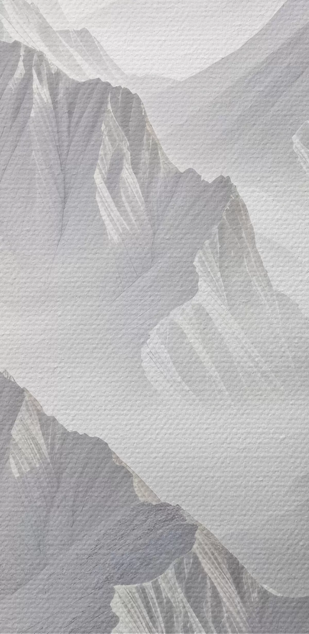 Okrągłe obrazy Śnieżne minimalistyczne szczyty górskie w mglistym, mglistym krajobrazie r41083