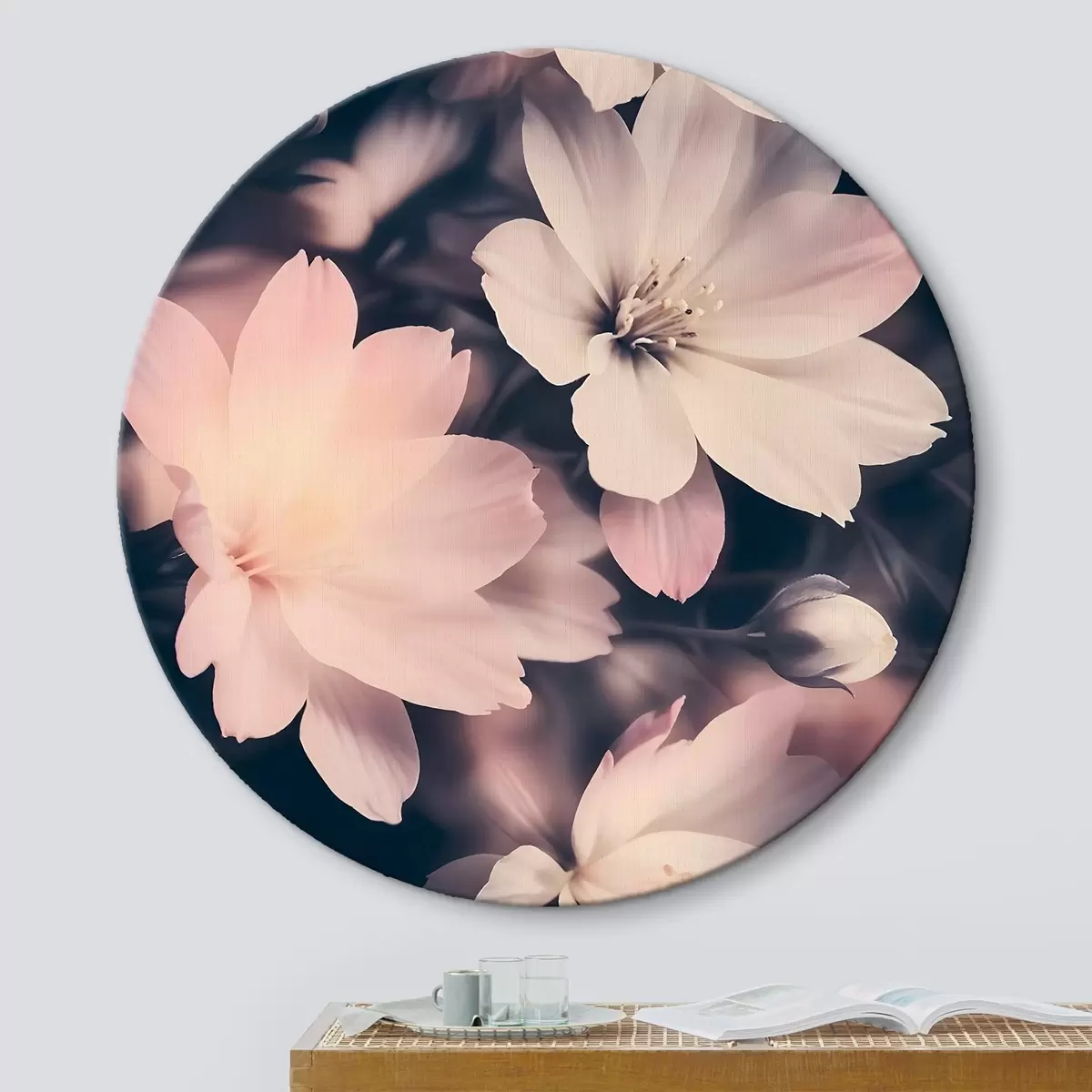Okrągłe obrazy Delikatne różowe i białe kwiaty w stylu vintage z rozmytym tłem r41084