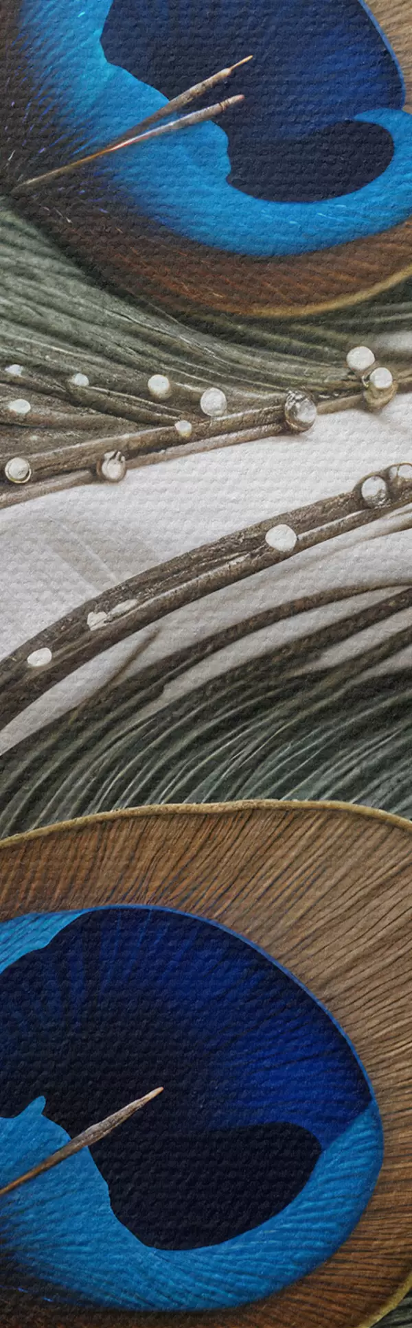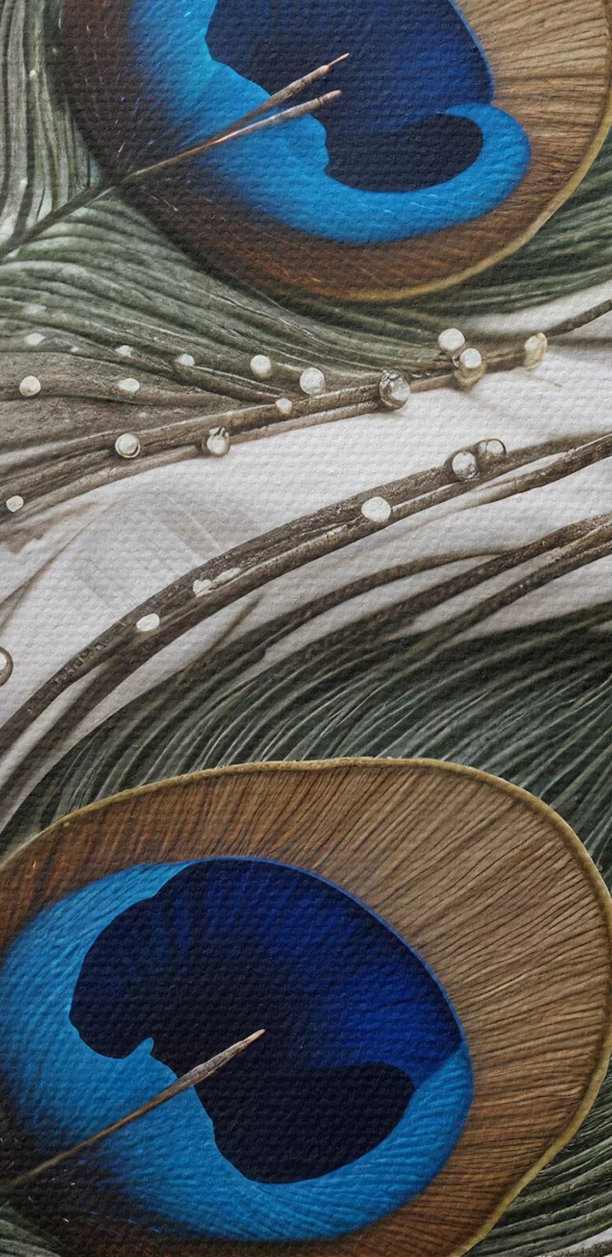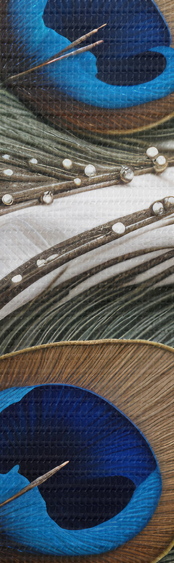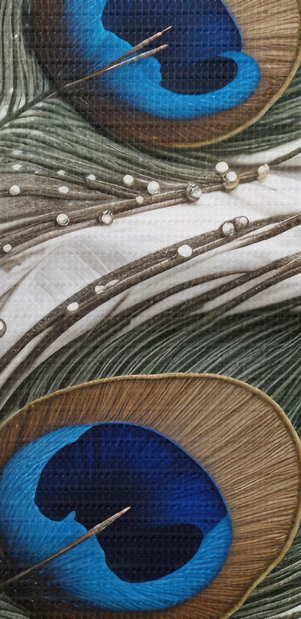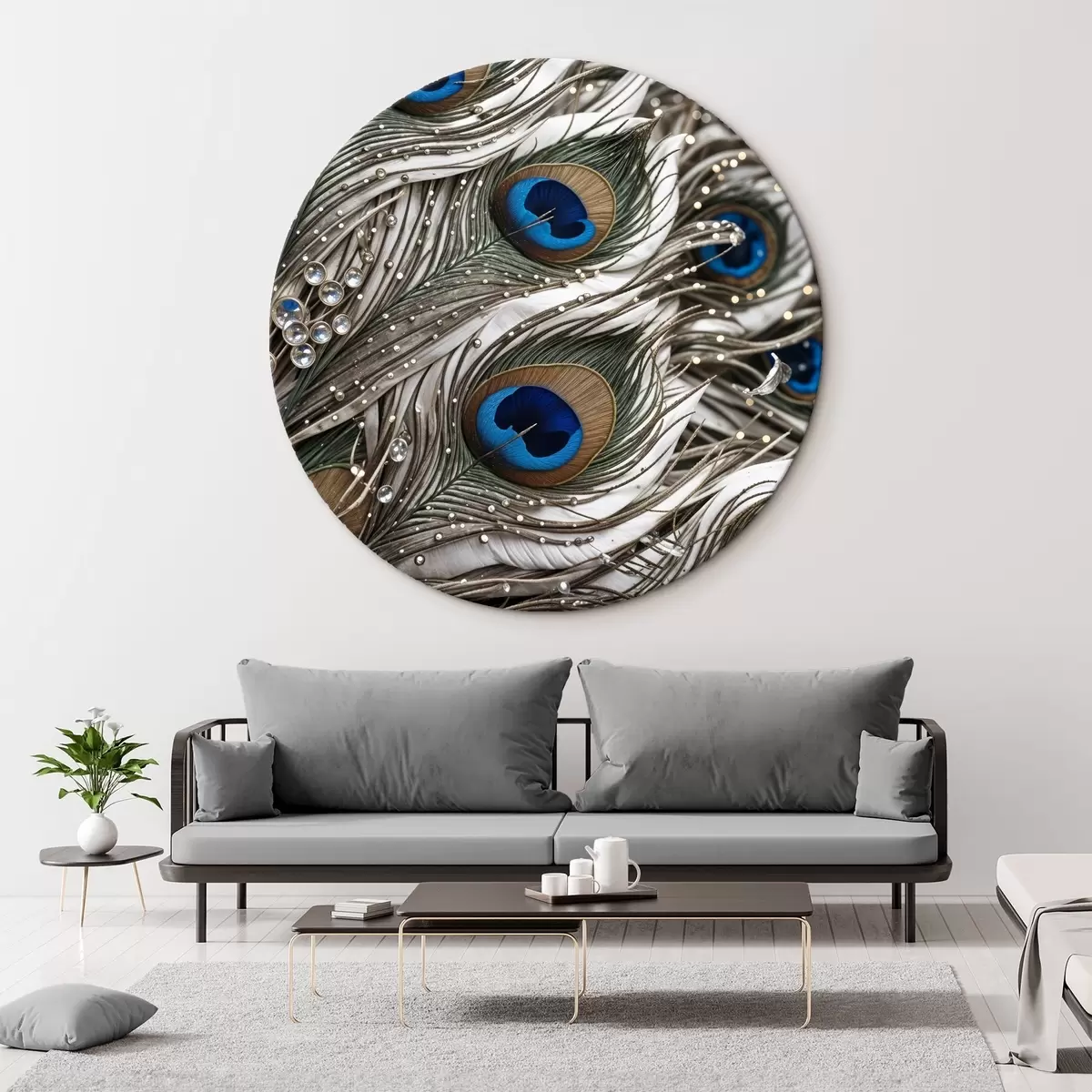 Okrągły obraz Żywe pawie pióra z misternymi wzorami i uderzającymi niebieskimi wzorami Nr r41103