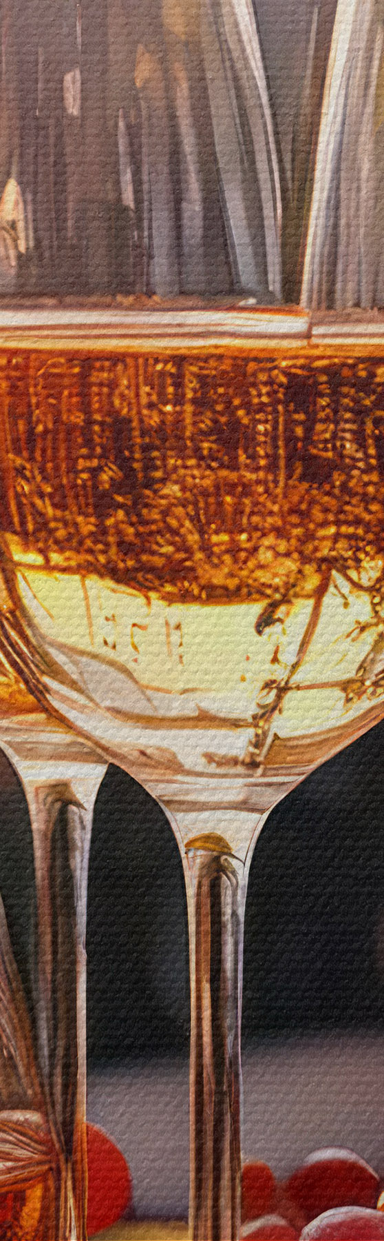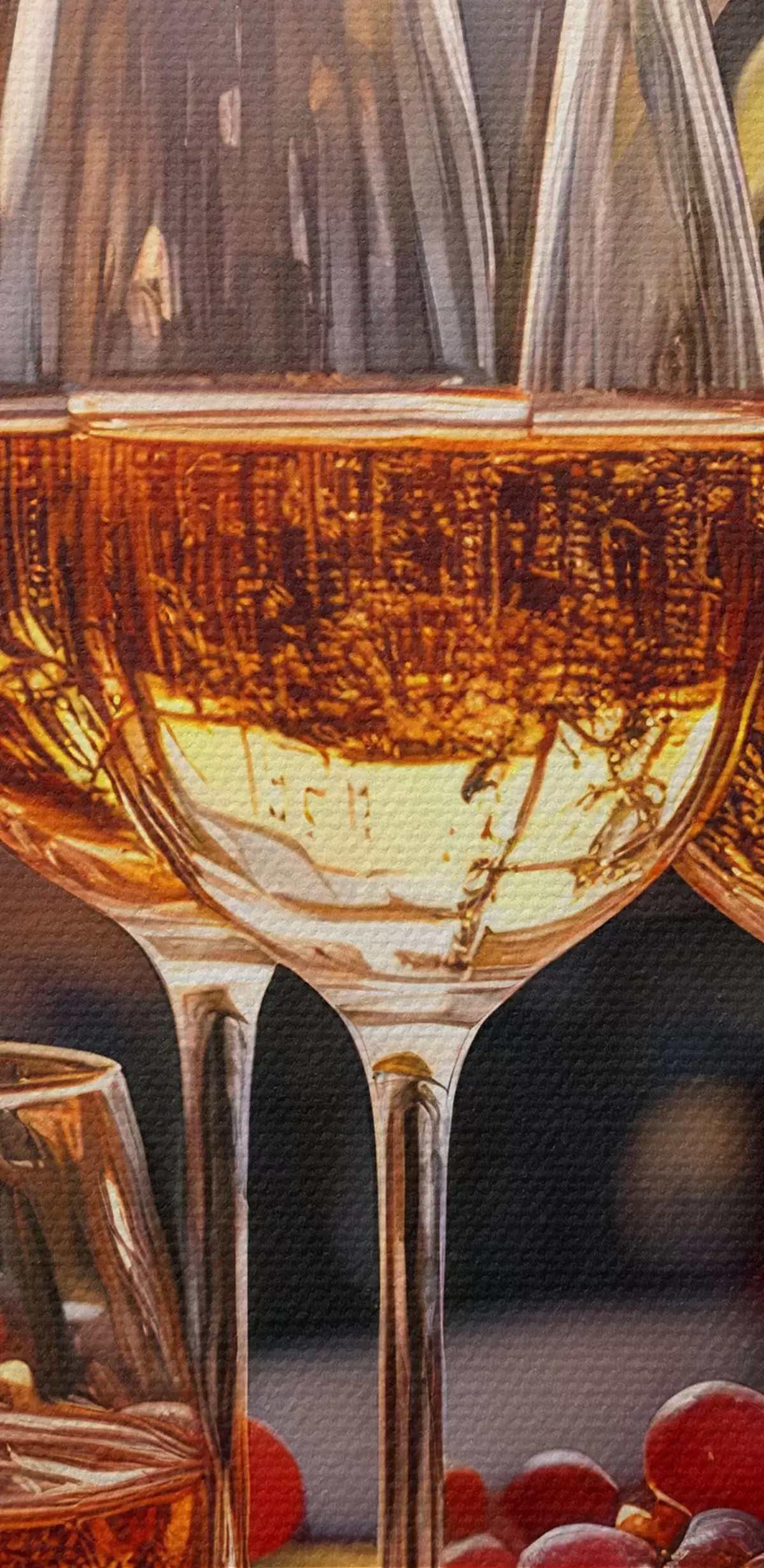 Okrągły obraz kieliszki z winem, winogrona na stole, martwa natura Nr r41104