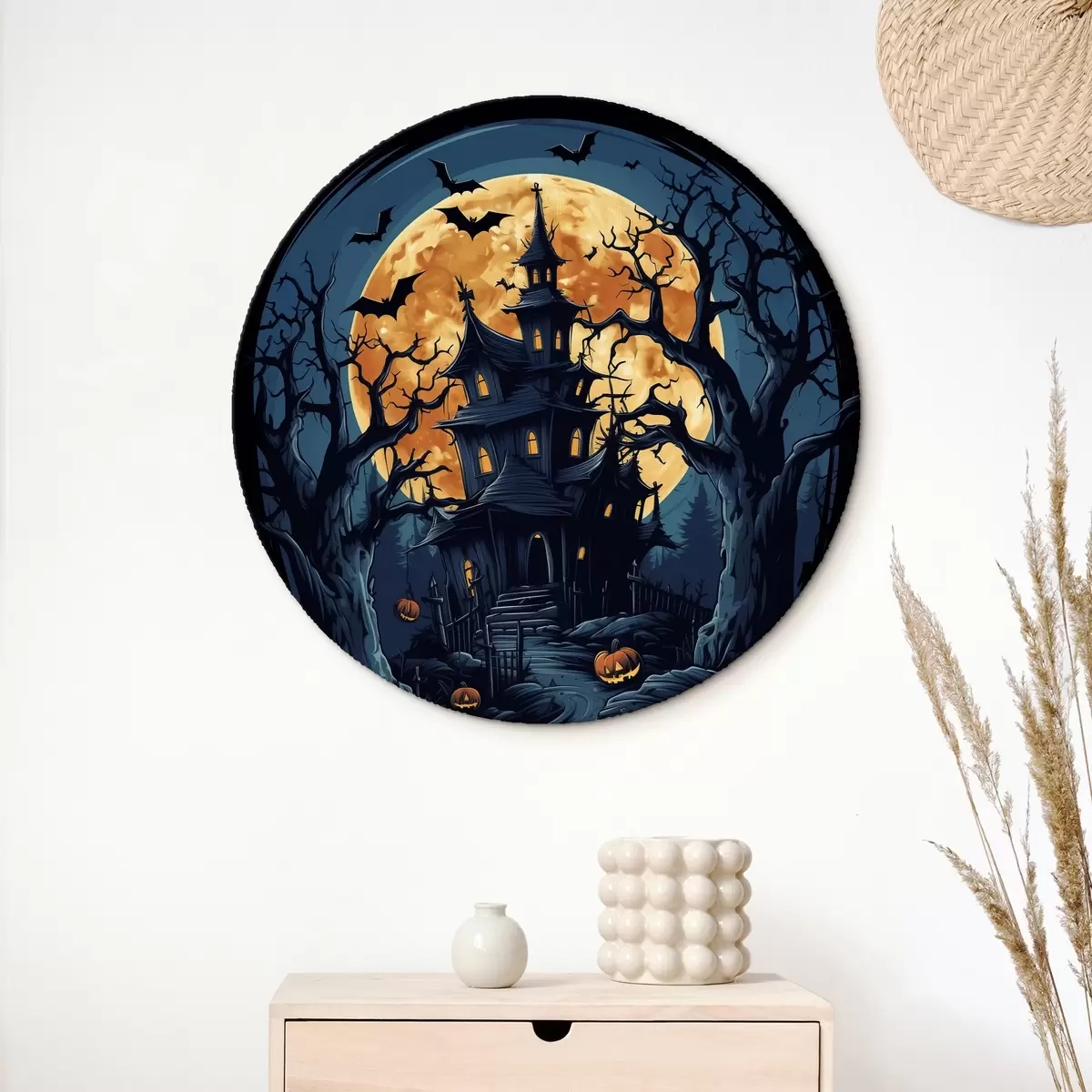 Okrągły obraz Halloween, zamek w lesie Nr r41134