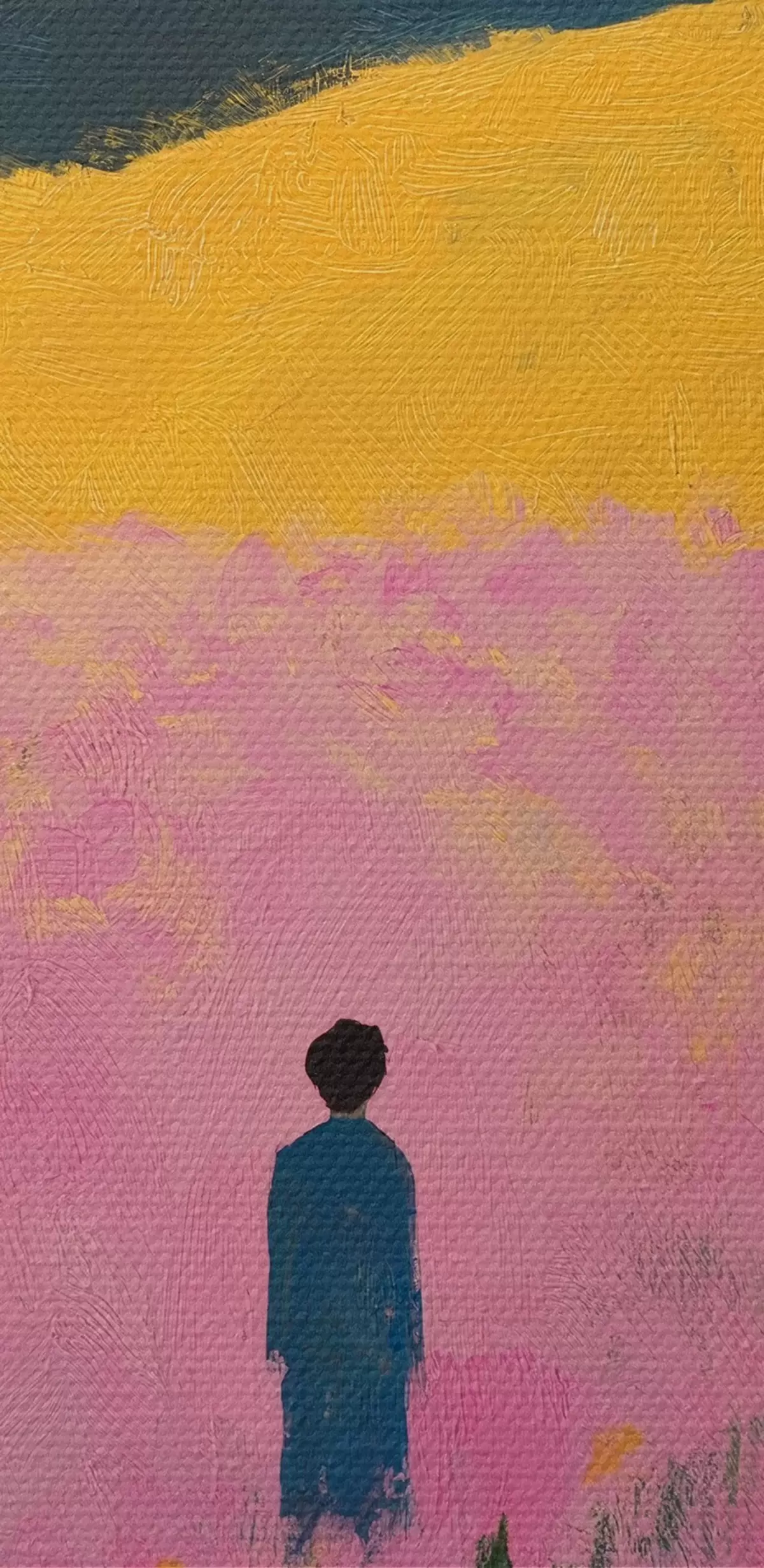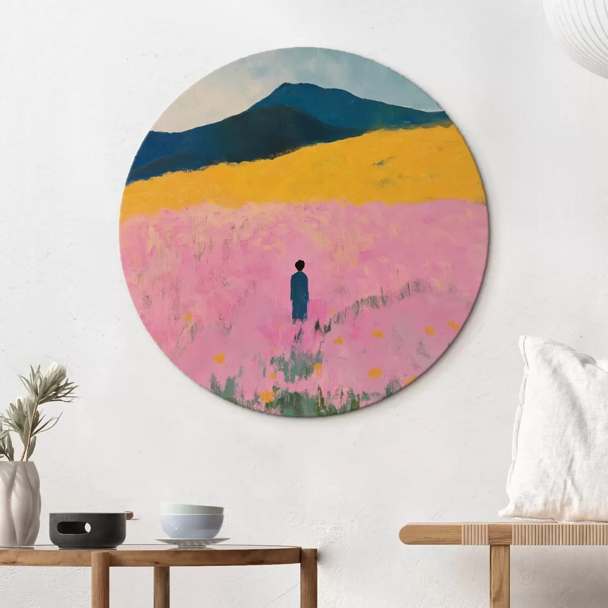 Okrągłe obrazy Mężczyzna na polu z różowymi kwiatami r41164