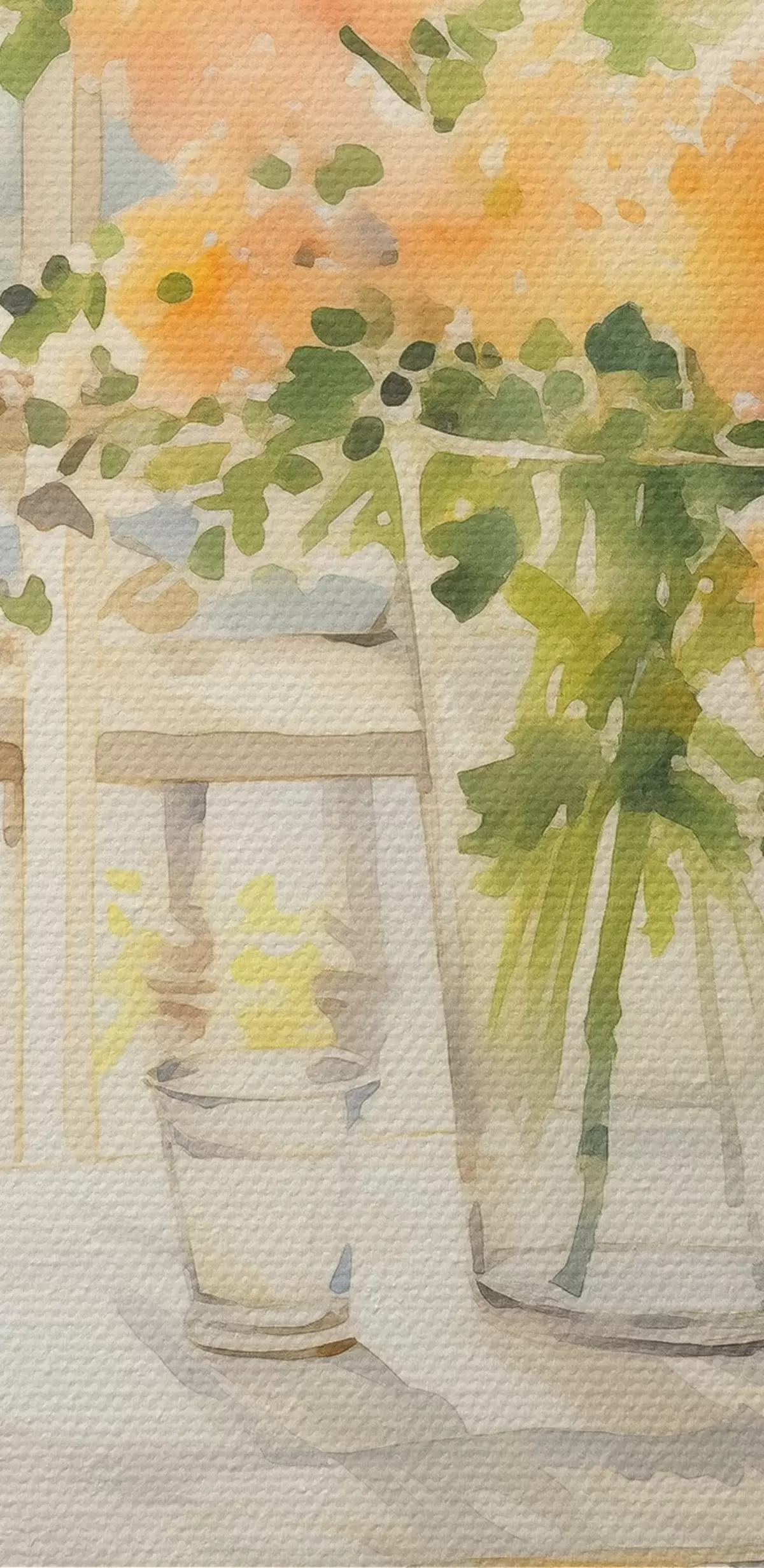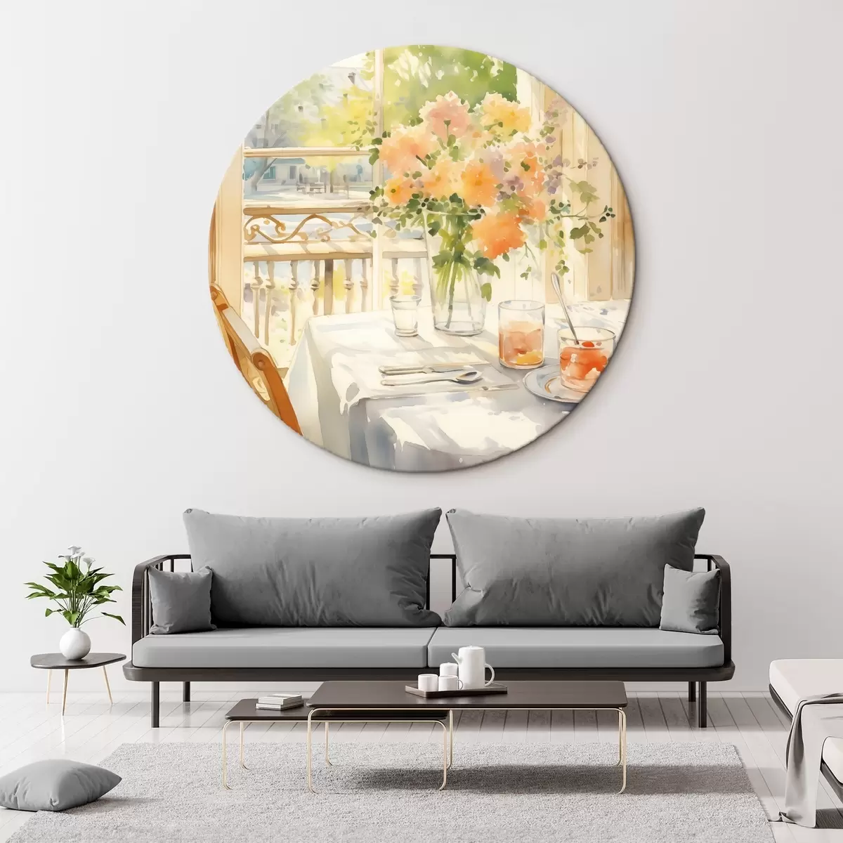 Okrągły obraz Romantyczna kolacja, akwarela, styl boho, kwiaty, natura Nr r41165