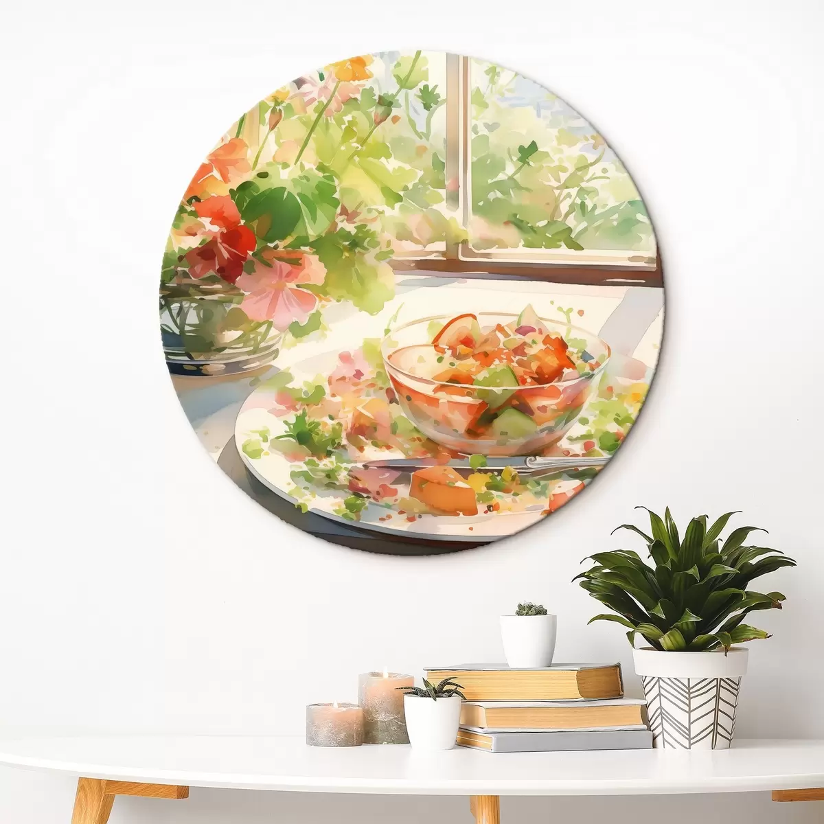 Okrągły obraz Akwarelowa zielona sałatka, światło słoneczne w oknie, styl rustykalny Nr r41167