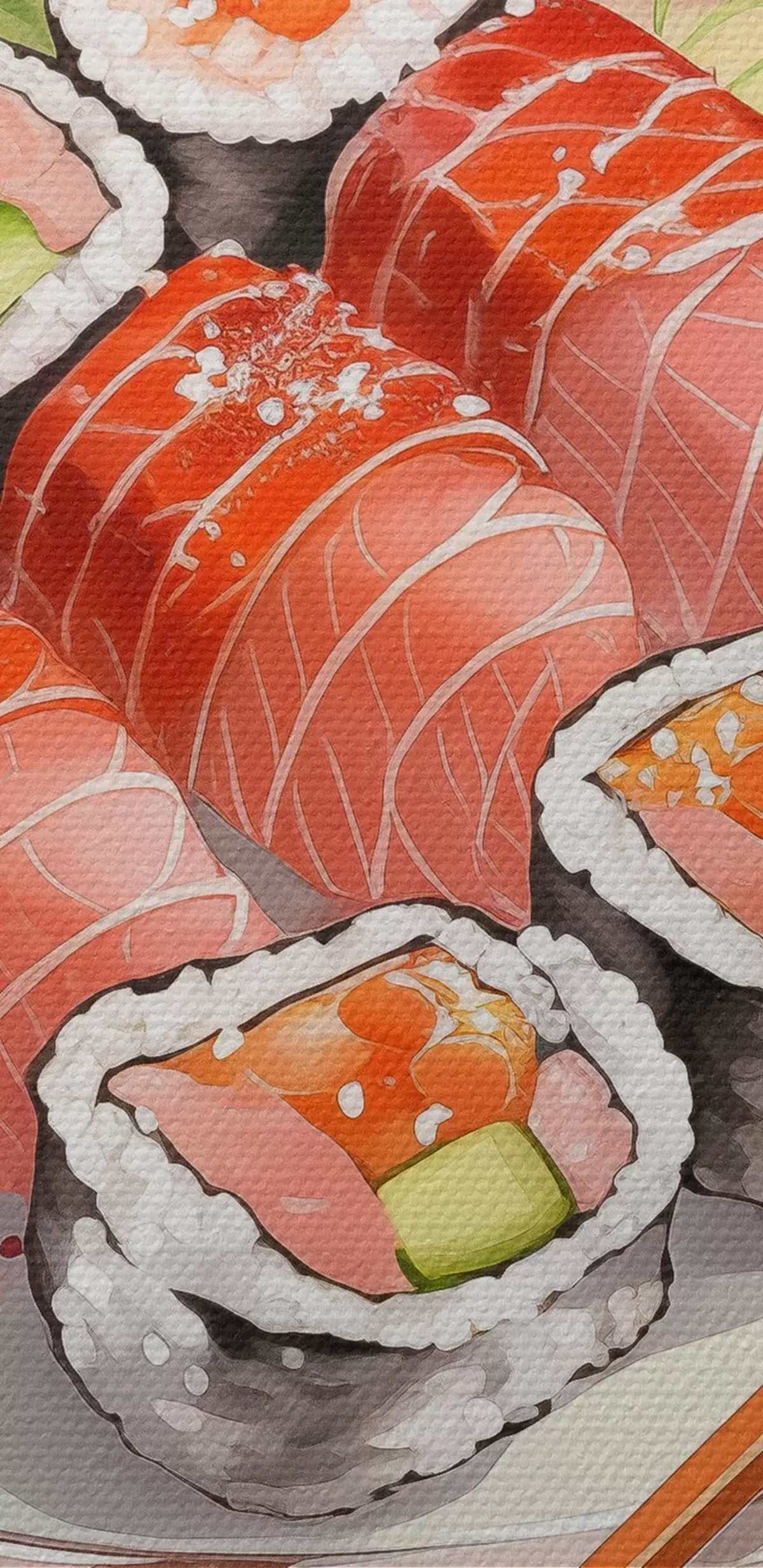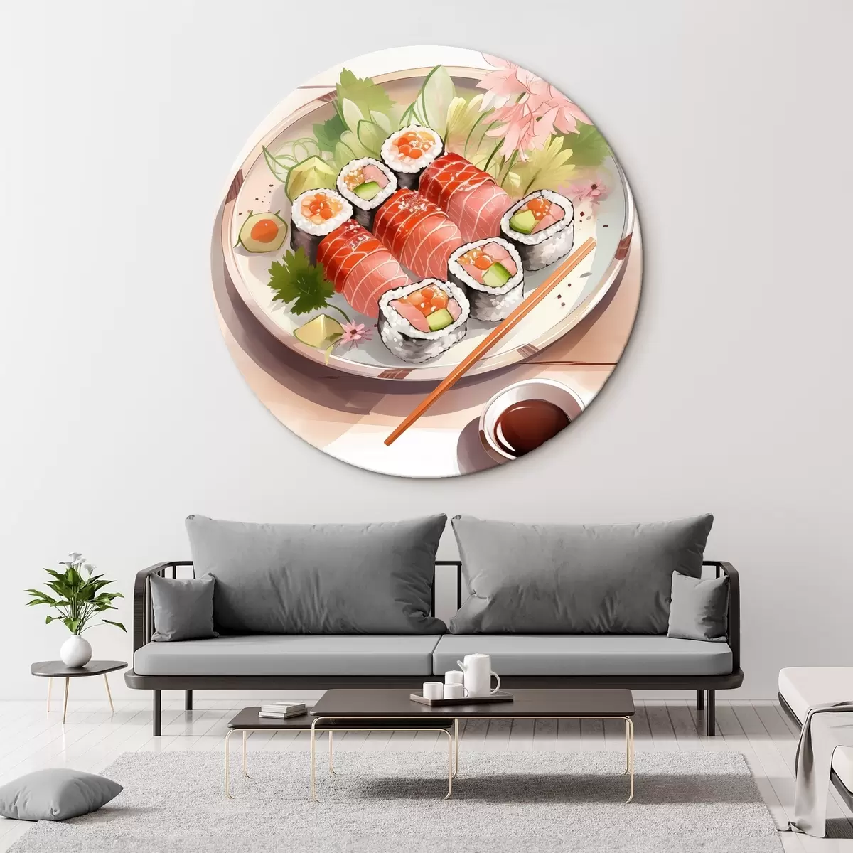 Okrągły obraz Akwarela sushi, kwiatowa, japońska Nr r41181