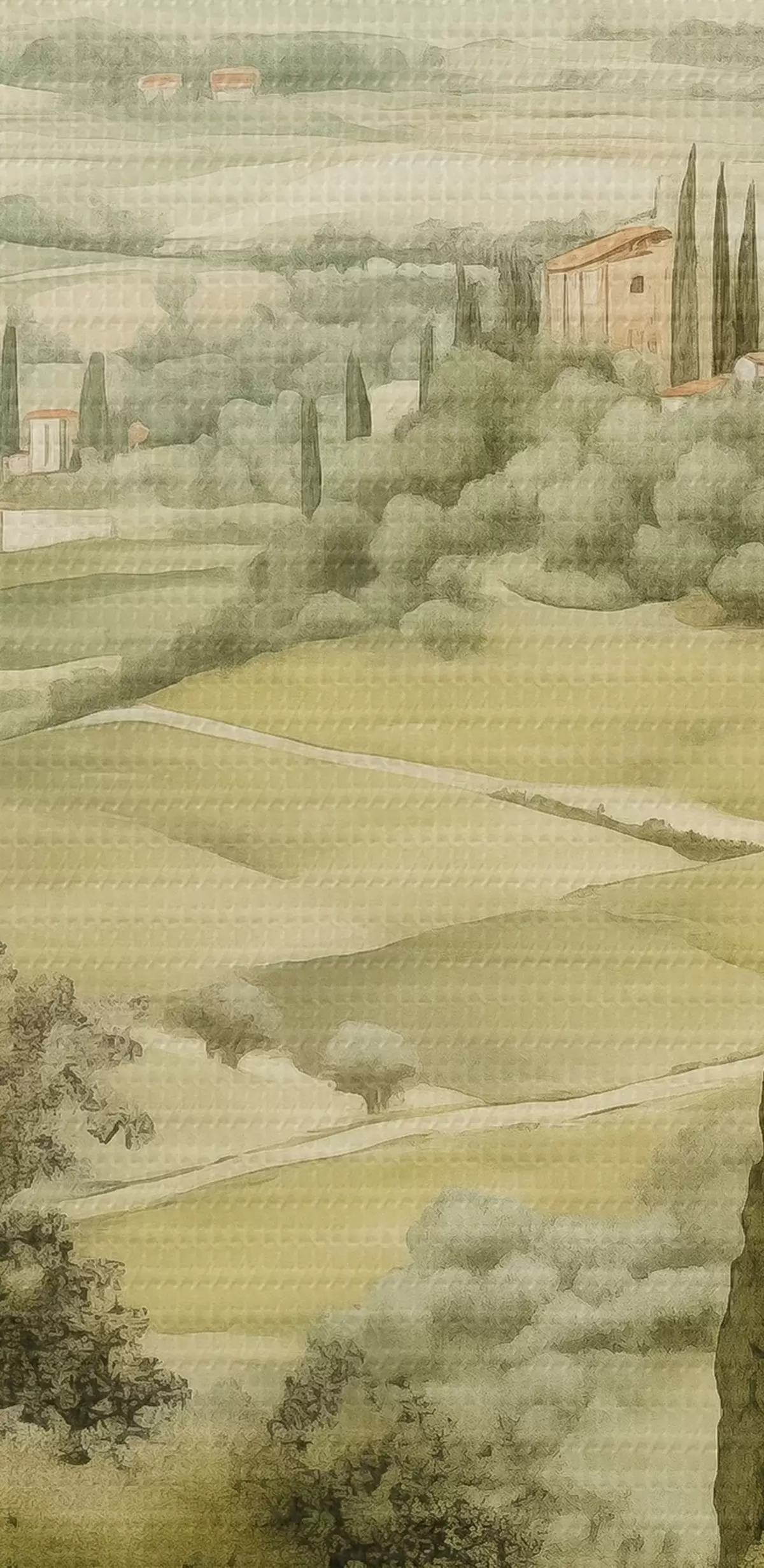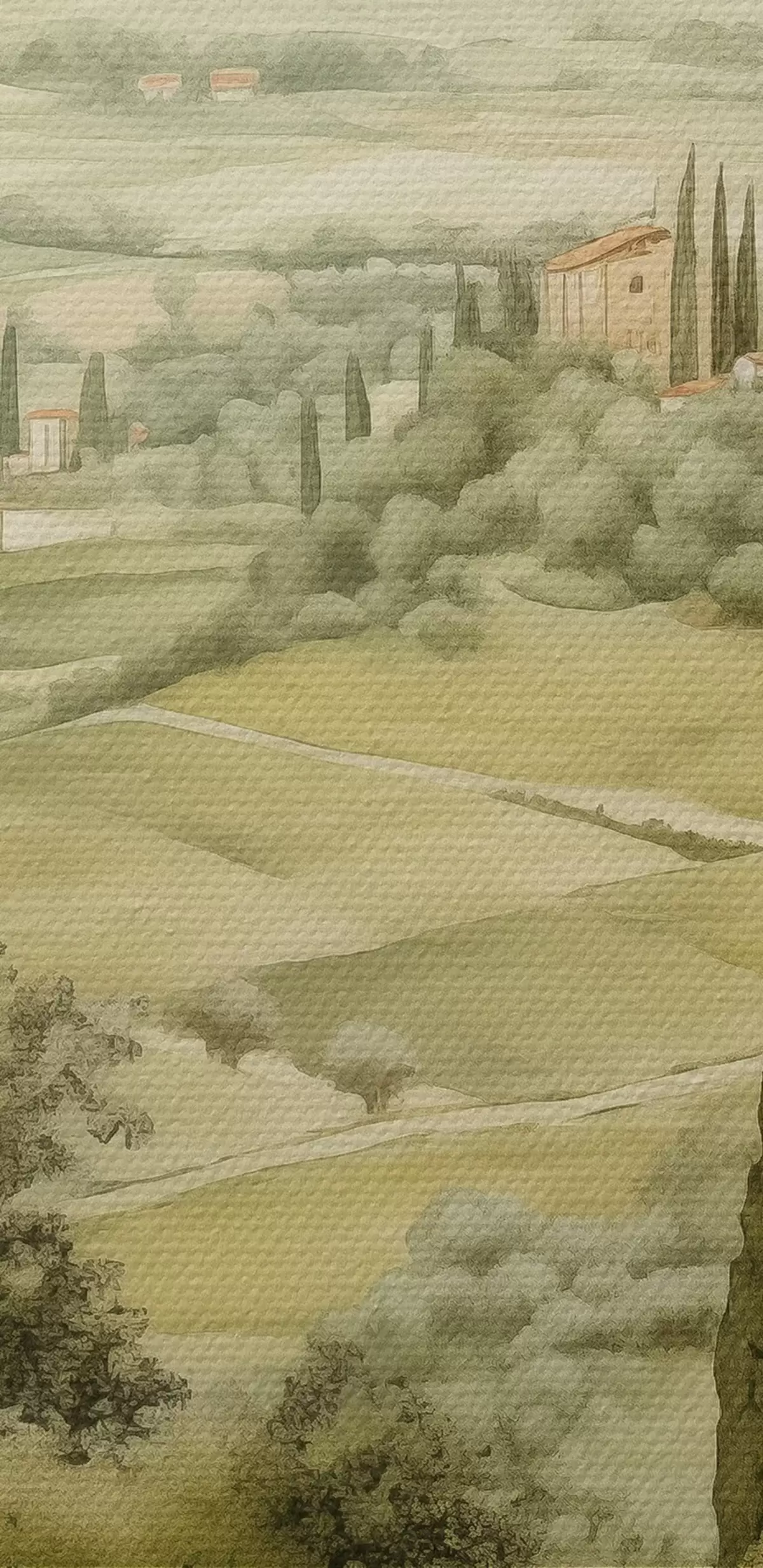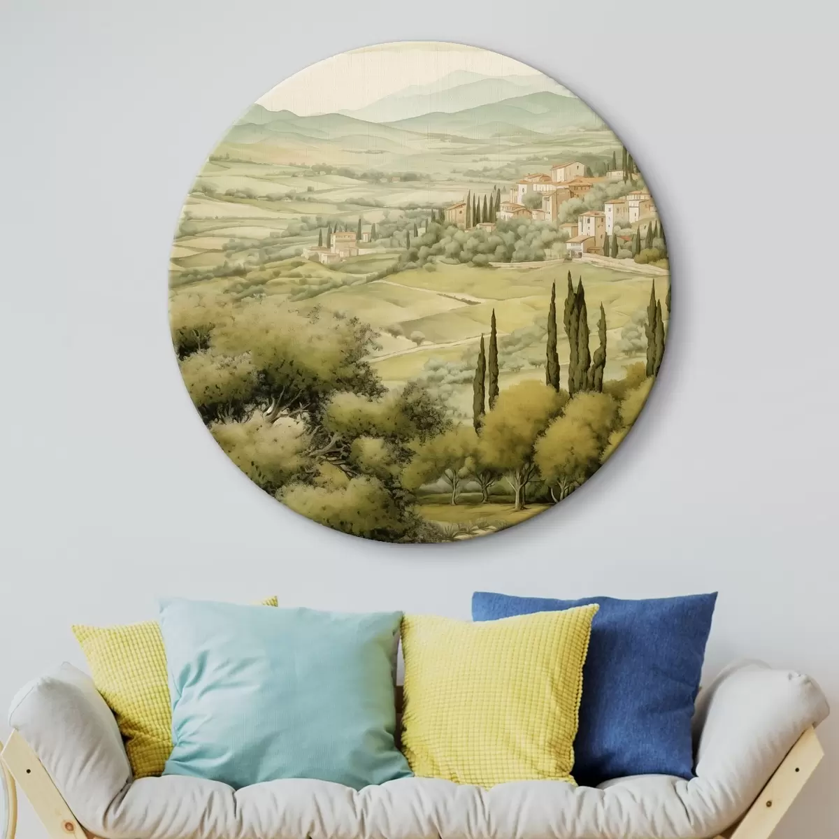 Okrągły obraz Pejzaże Toskanii, akwarela, styl boho Nr r41220