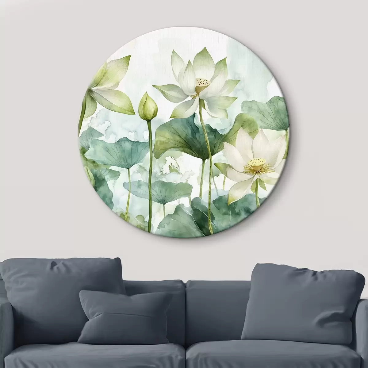 Okrągłe obrazy Akwarelowe lotosy, bujna zieleń r41226