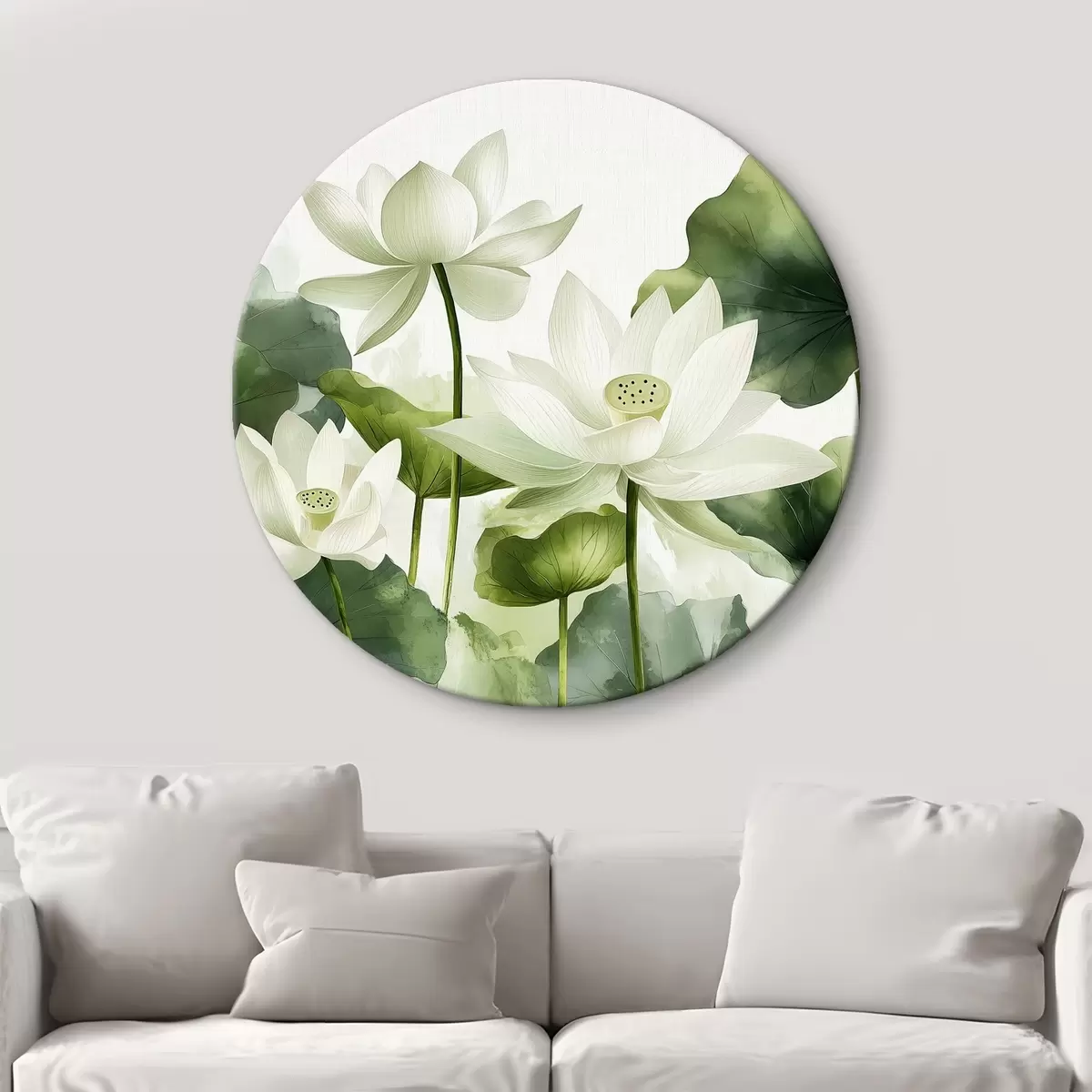 Okrągłe obrazy Piękne akwarelowe kwiaty lotosu r41227
