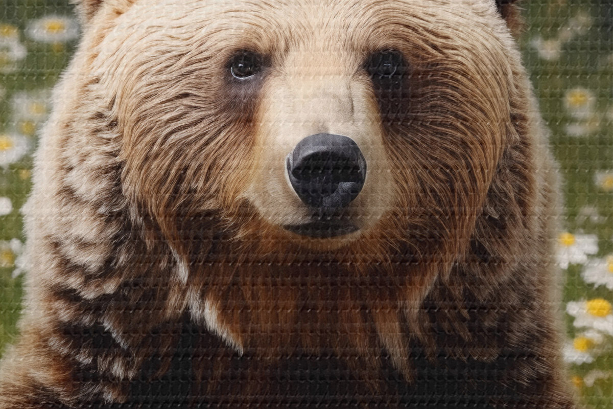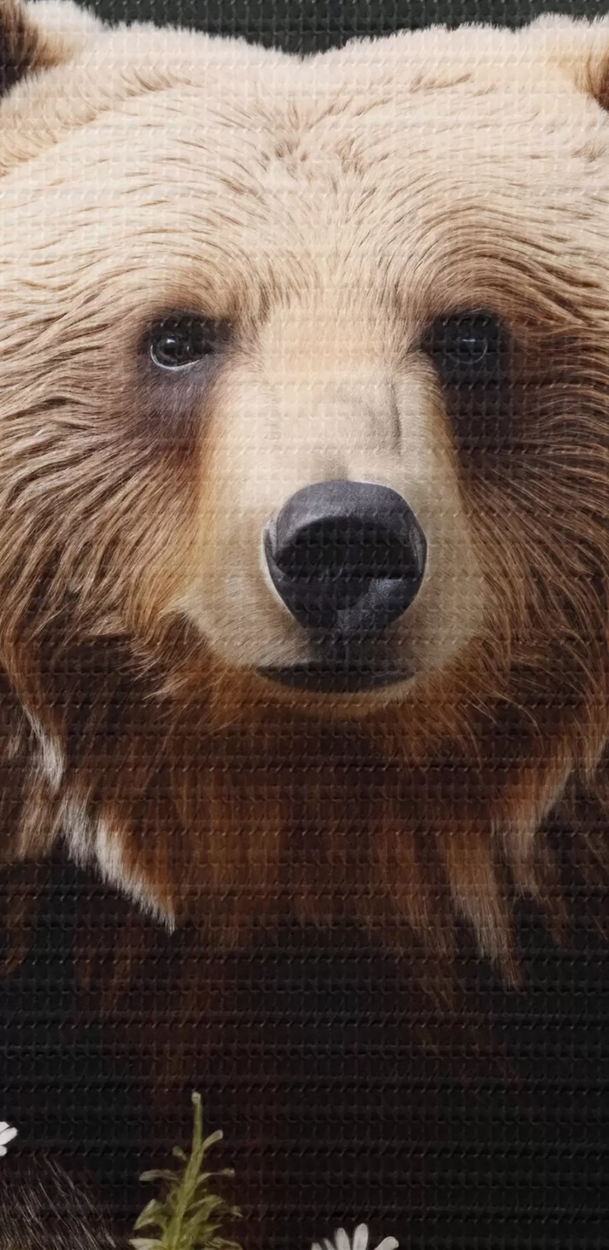 Okrągły obraz Niedźwiedź brunatny siedzi na łące stokrotek Nr r41282