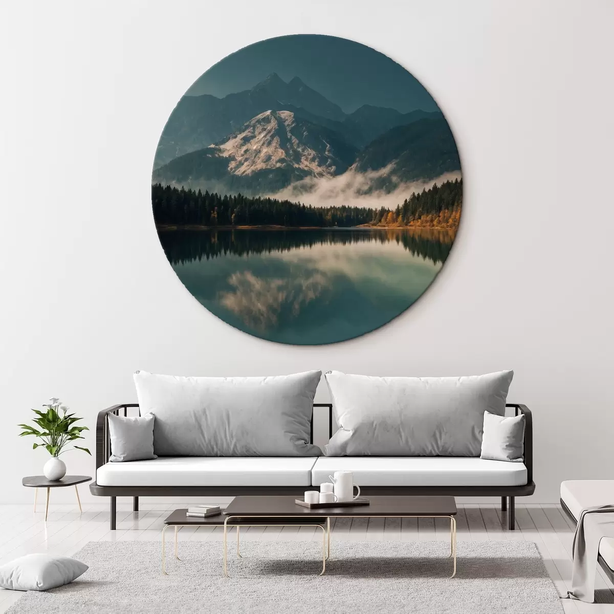 Okrągły obraz Górskie zdjęcie znad jeziora Nr r41316