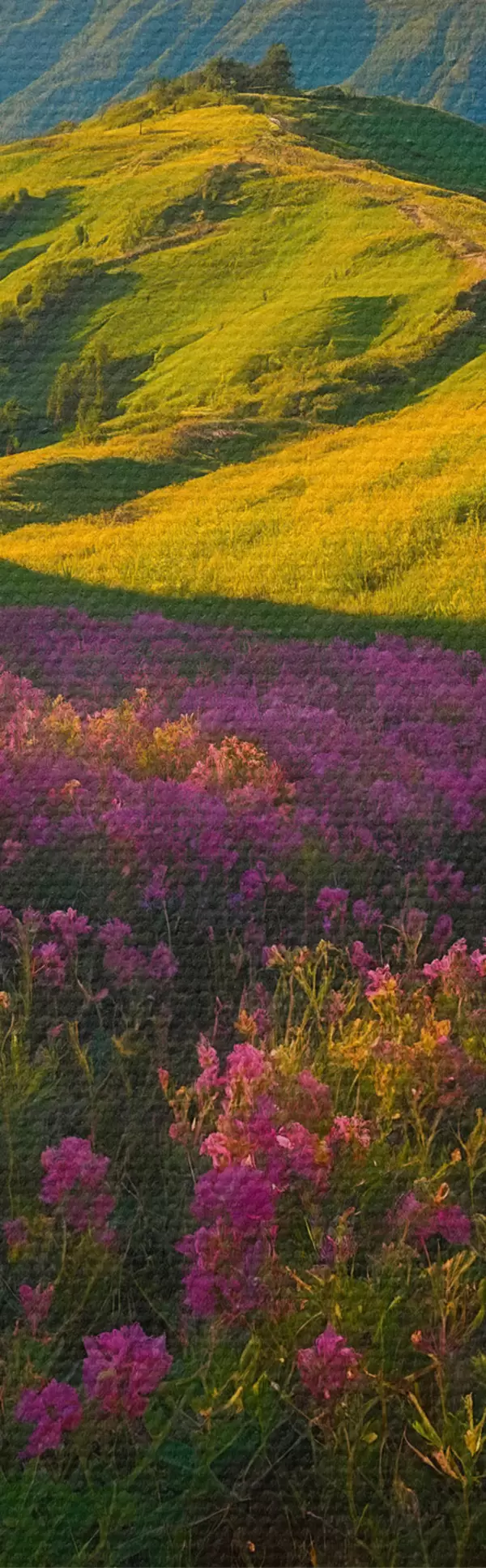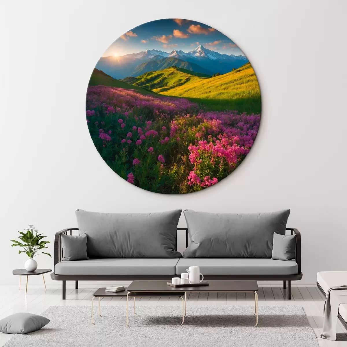 Okrągły obraz Fiołki na górskich szczytach Nr r41317