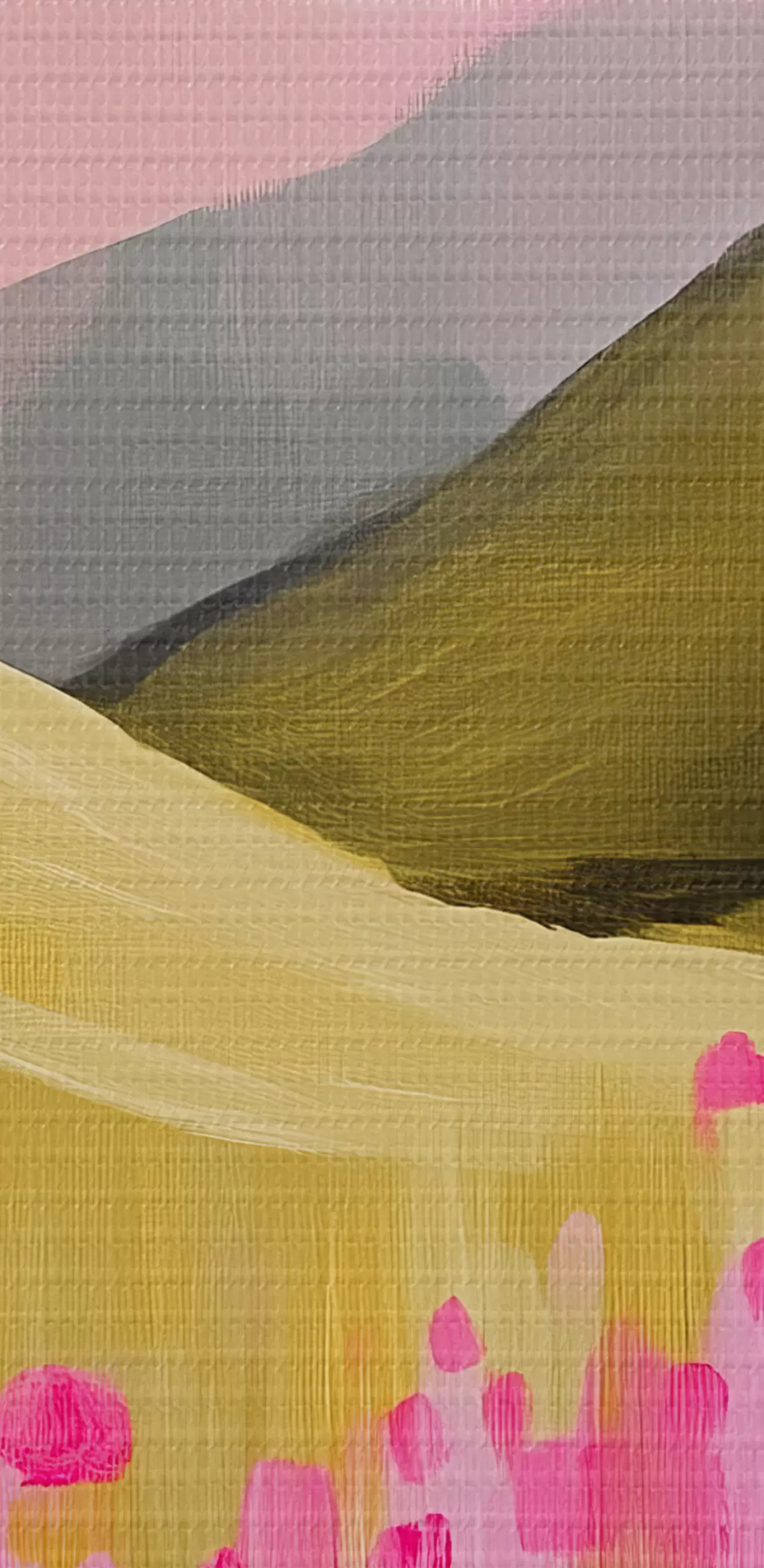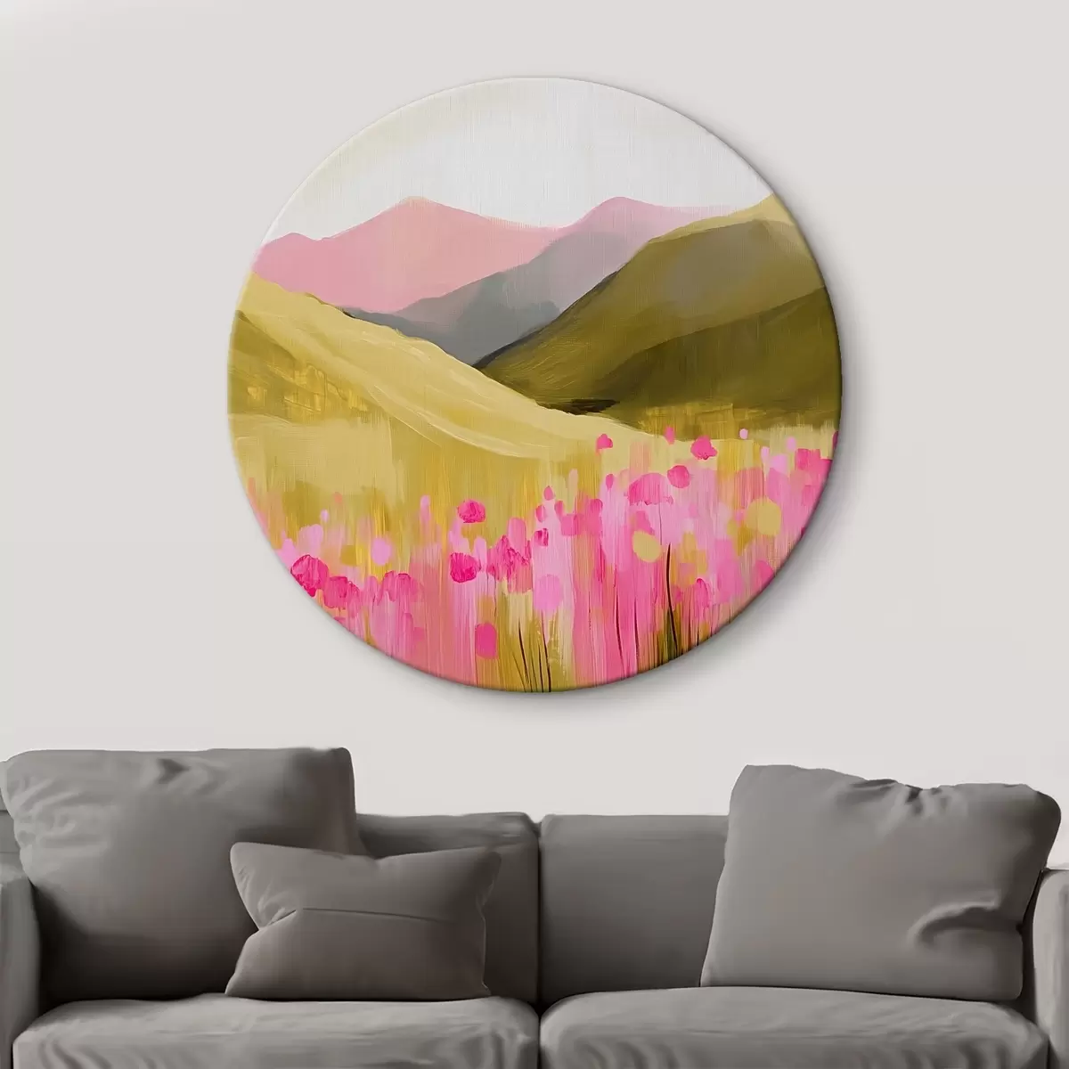 Okrągły obraz Różowe kwiaty w pobliżu gór Nr r41339