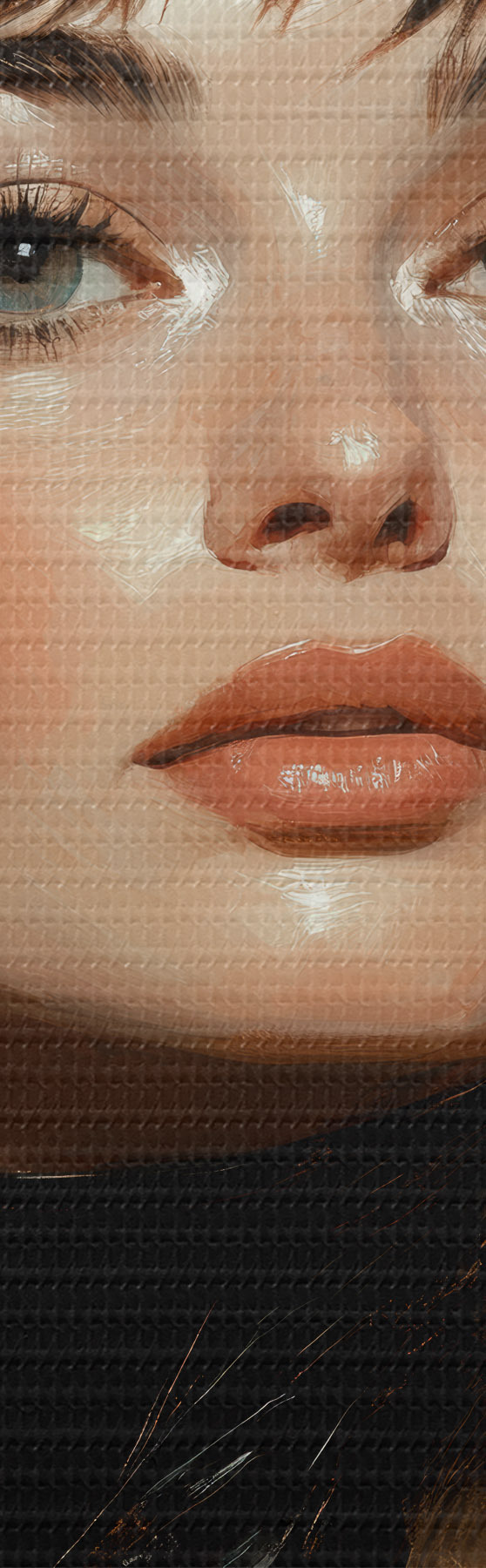 Do zamówienia dostępne są trzy rodzaje materiału: Economic Canvas - gęsty i trwały materiał do druku cyfrowego, identyczny z płótnem malarskim, wodoodporna powierzchnia, realistyczne odwzorowanie szczegółów, materiał średnioziarnisty. Premium Canvas - tekstura przypominająca płótno malarskie (przeplatane drobne nitki). Miękka, szczegółowa reprodukcja obrazu na matowej powierzchni. Eco-Premium - wysokiej jakości tkanina w 100% bawełniana. Dzięki naturalnym włóknom bawełnianym materiał jest trwały i odporny na zużycie. Doskonałe odwzorowanie kolorów i szczegółów.