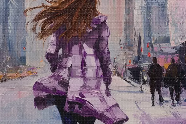 Okrągły obraz Dziewczyna w fioletowym płaszczu Nr r41345