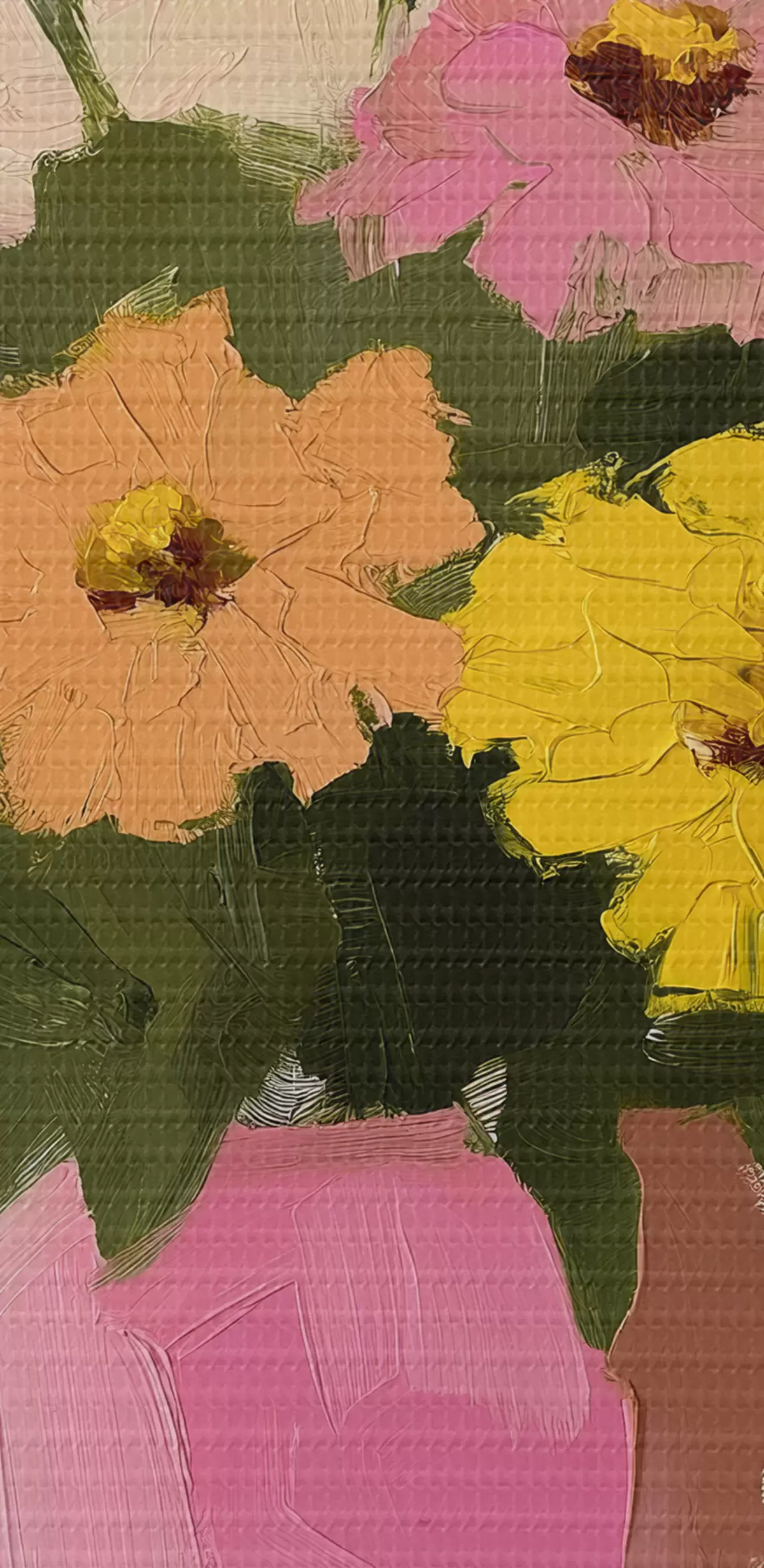 Drobny splot nici na tym płótnie przypomina powierzchnię profesjonalnych płócien artystycznych.