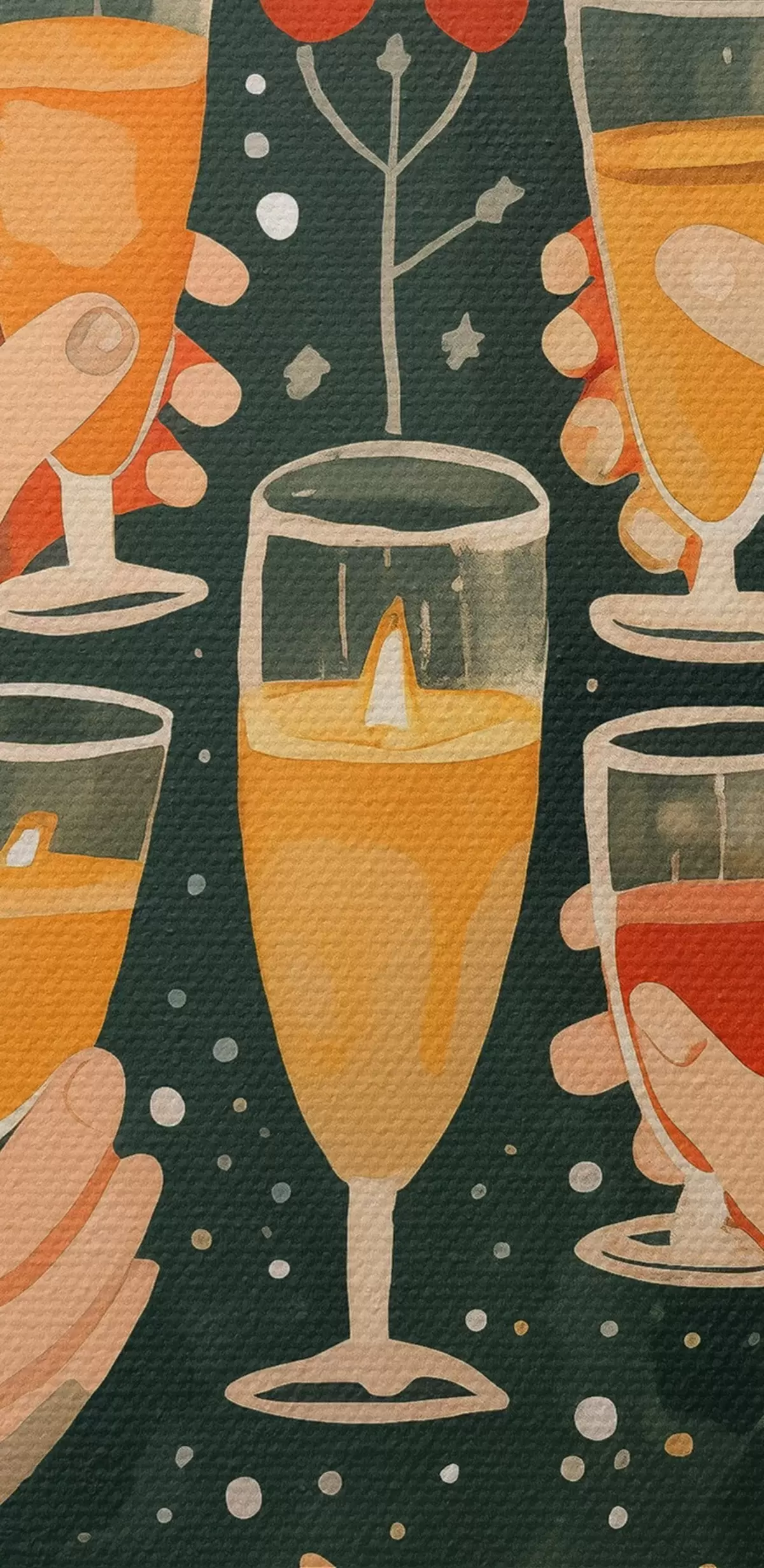 Okrągły obraz Uroczystość, kieliszki do szampana, Boże Narodzenie, las, sztuka abstrakcyjna Nr r41368