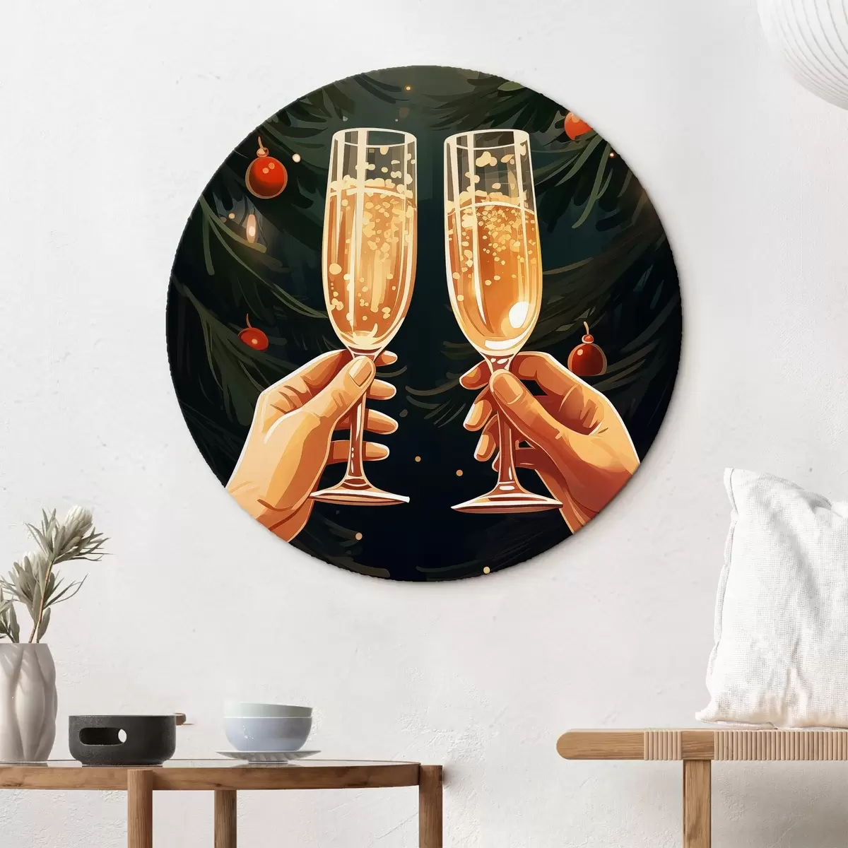 Okrągły obraz Uroczystość, kieliszki do szampana, Boże Narodzenie, sosna, świece, lampki choinkowe Nr r41373